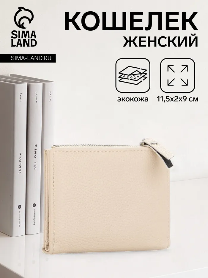 Кошелёк женский на кнопке, 11.5×2×9 см, однотонный, бежевый — Характеристики