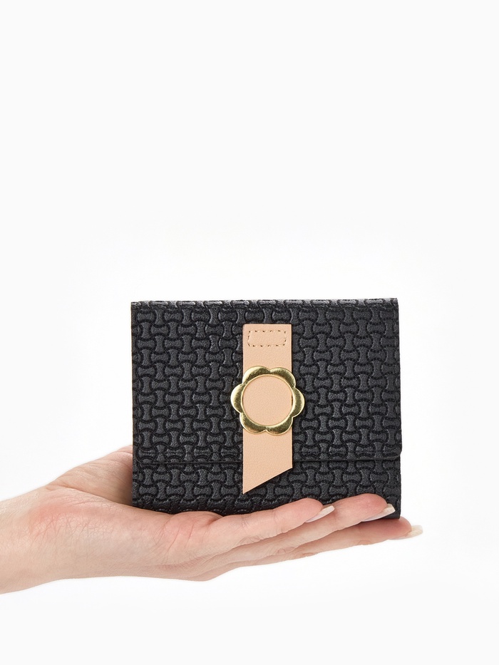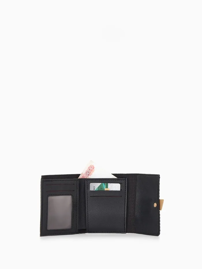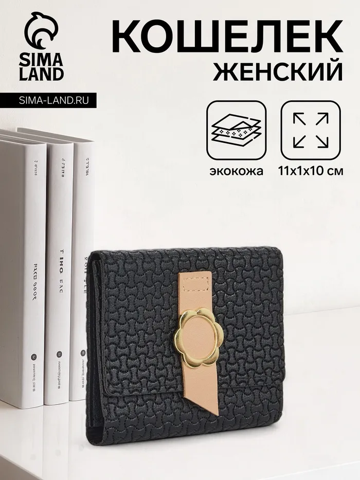 Кошелёк женский на кнопке, 11×1×10 см, комбинированный, чёрный — Характеристики