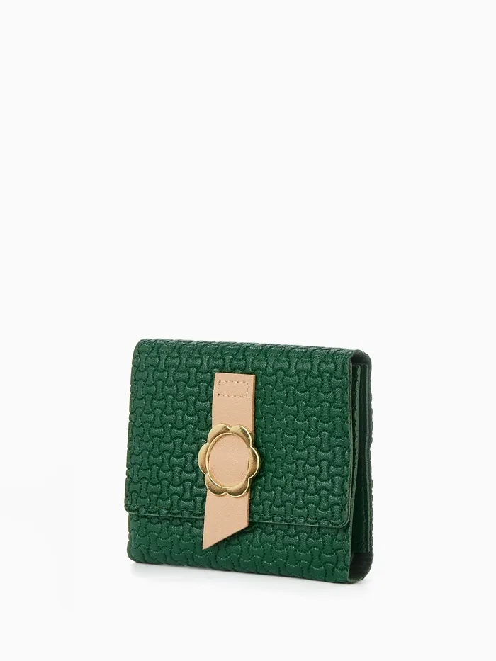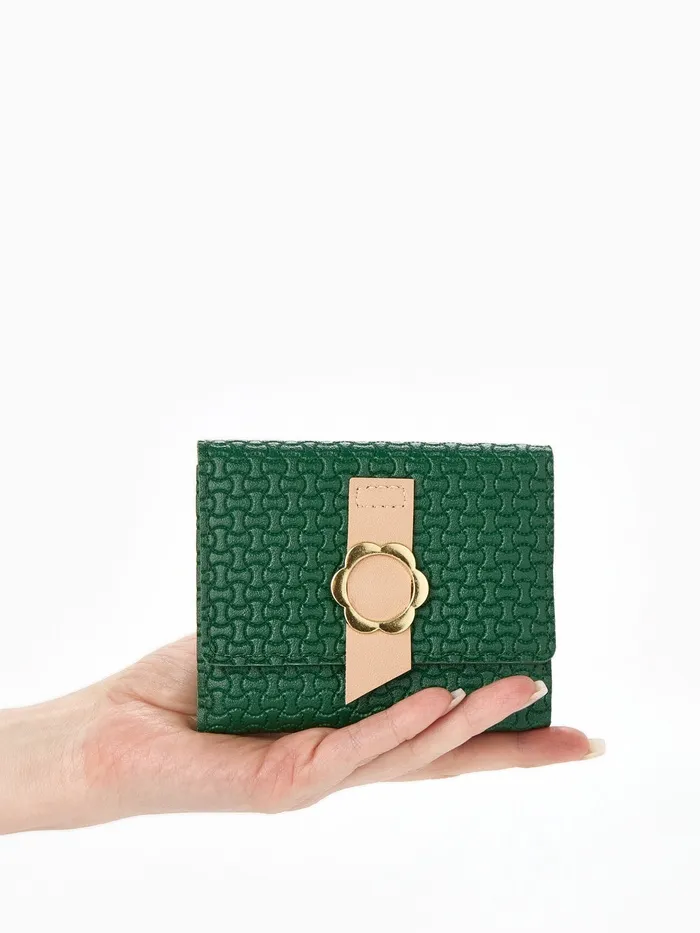 Кошелёк женский на кнопке, 11×1×10 см, комбинированный, зелёный — Характеристики