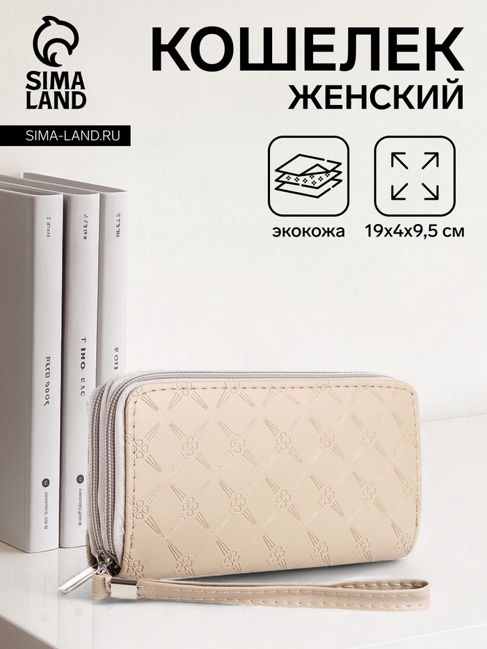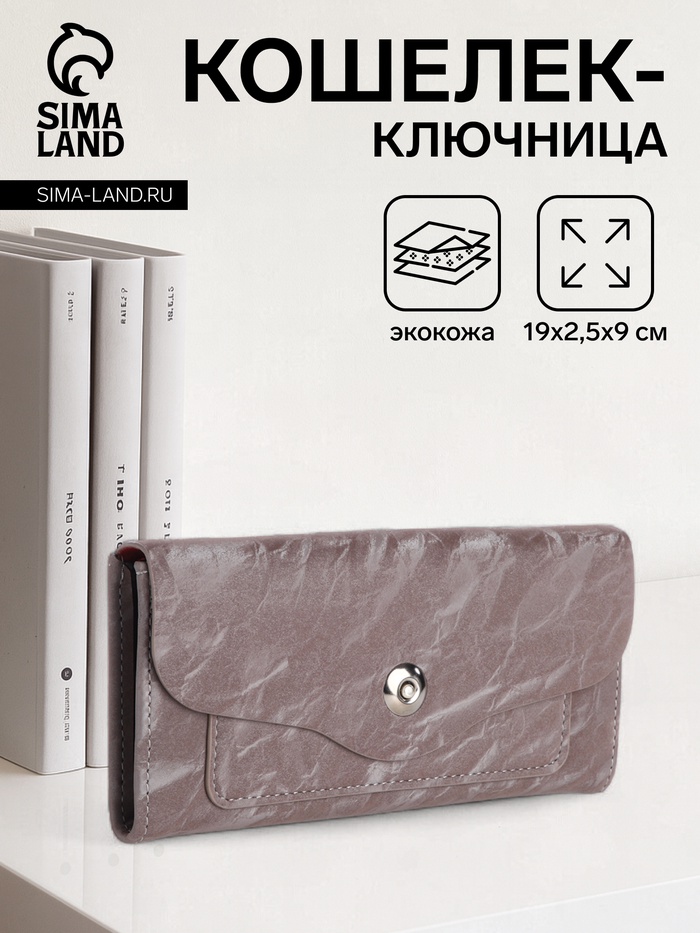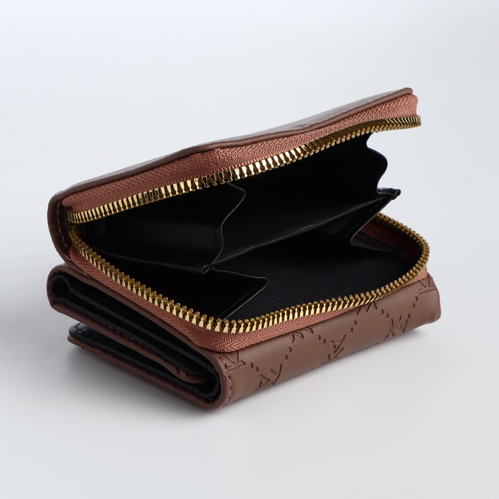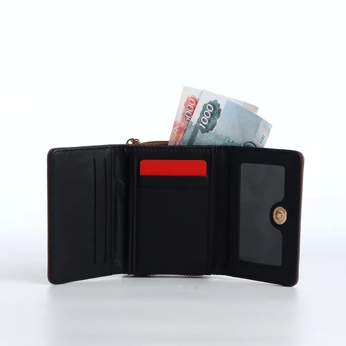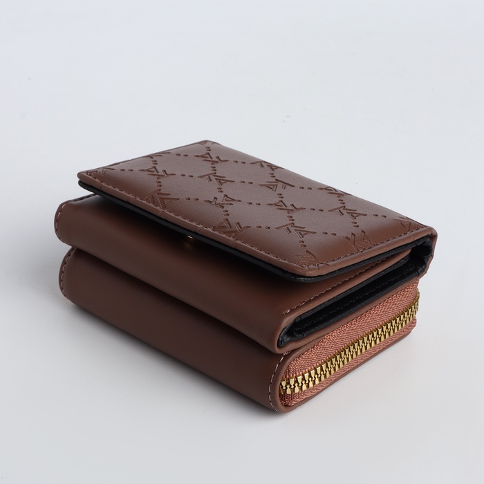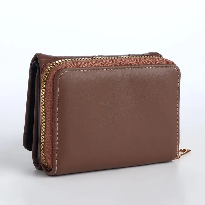 Кошелёк женский на кнопке 11×4×8 см, тиснением, коричневый — Характеристики