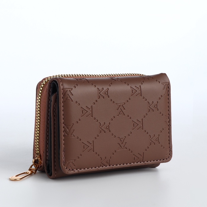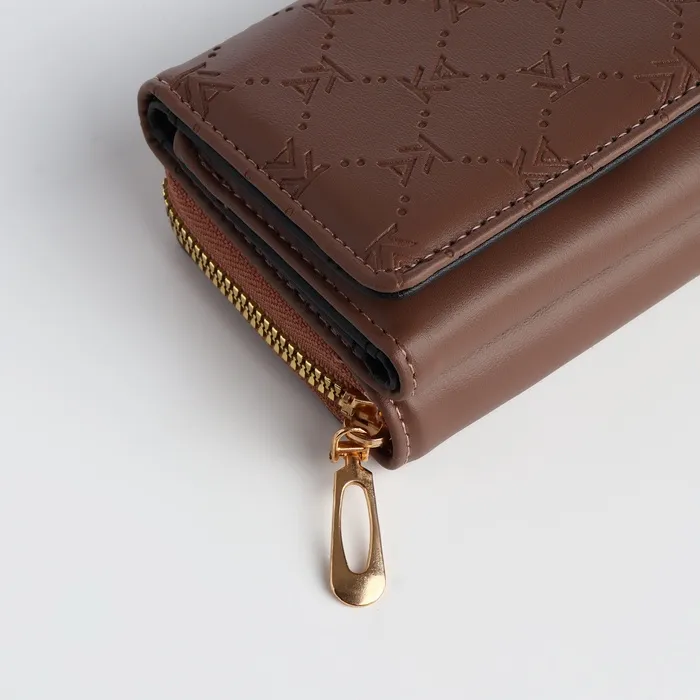 Кошелёк женский на кнопке 11×4×8 см, тиснением, коричневый