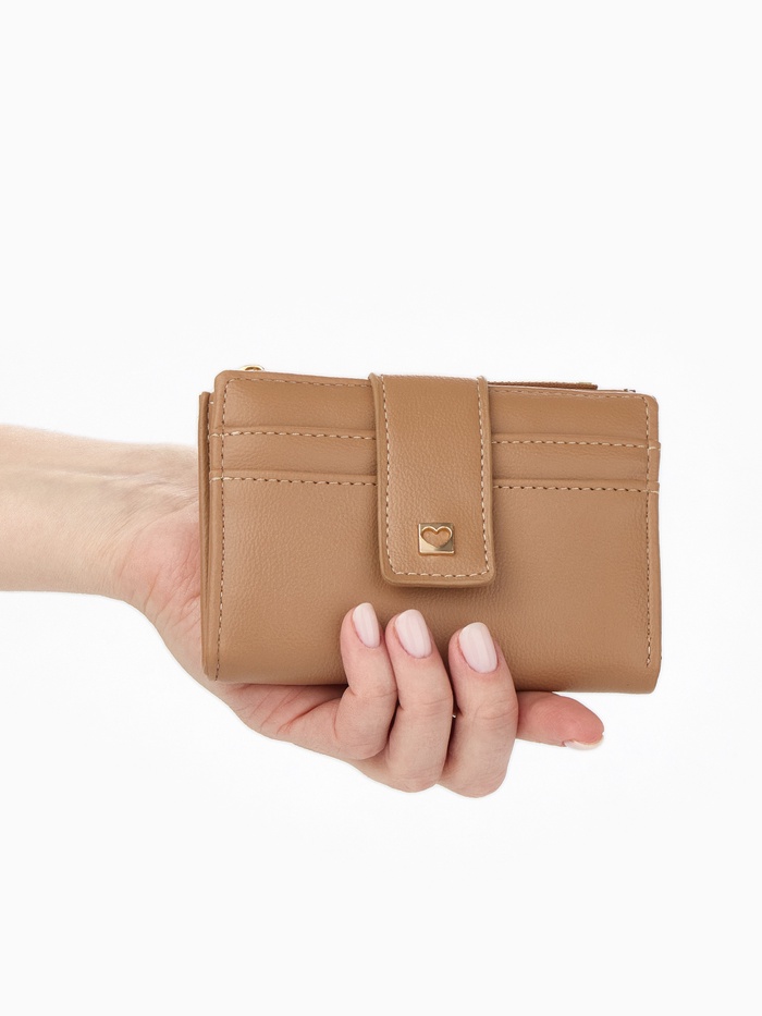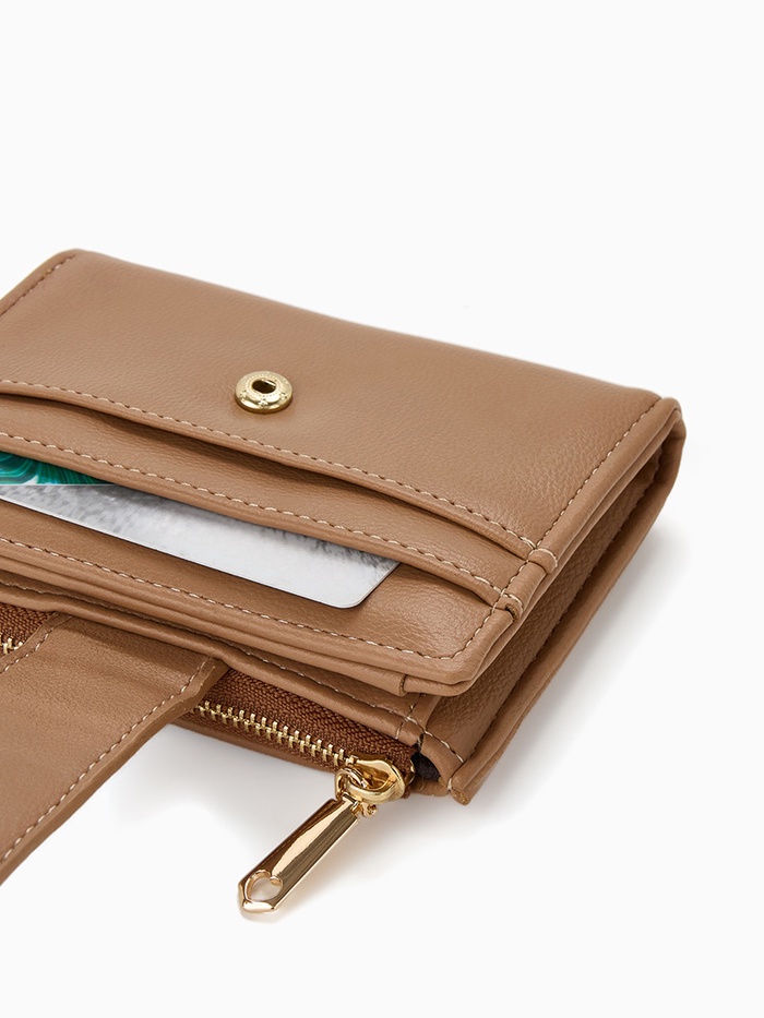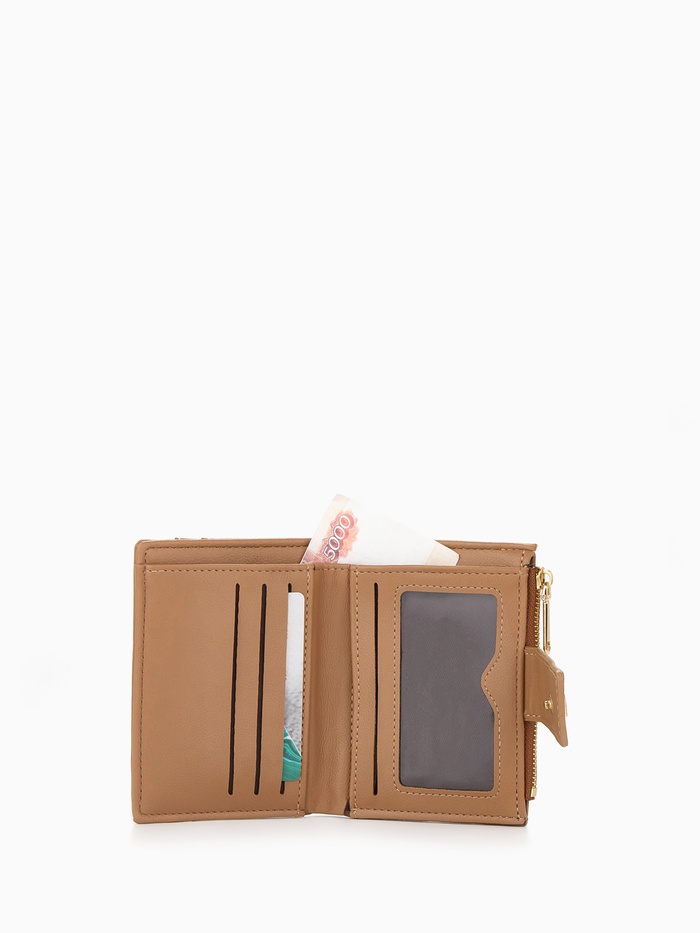 Кошелёк женский на кнопке, 12.5×2×9 см, однотонный, бежевый — Характеристики