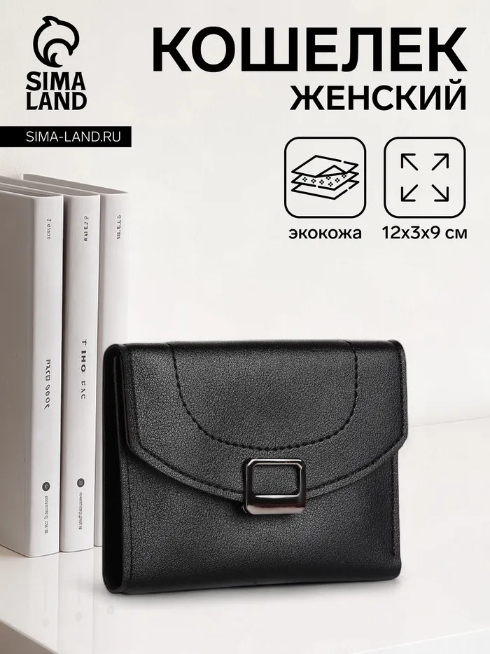 Кошелёк женский на кнопке, 12×3×9 см, однотонный, чёрный — Характеристики