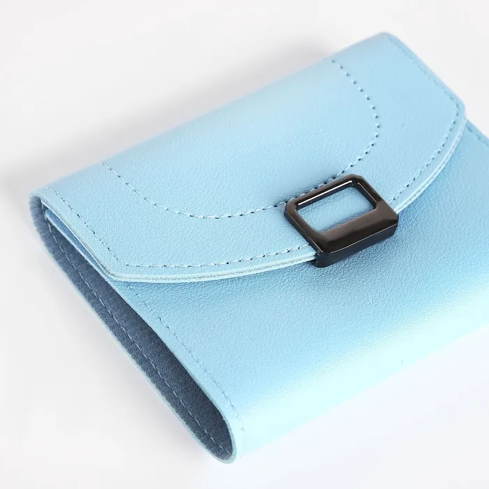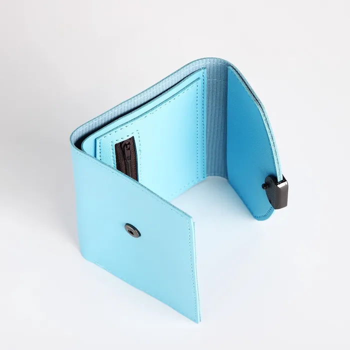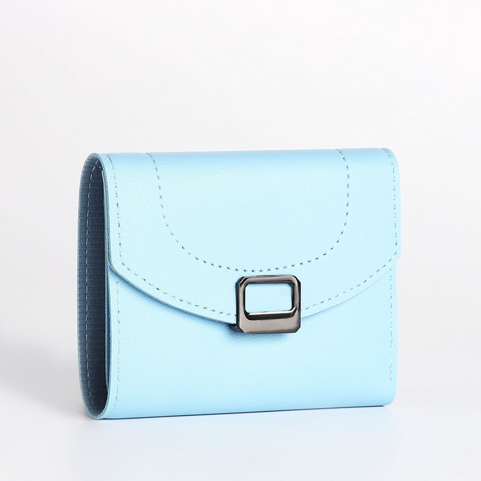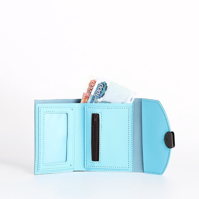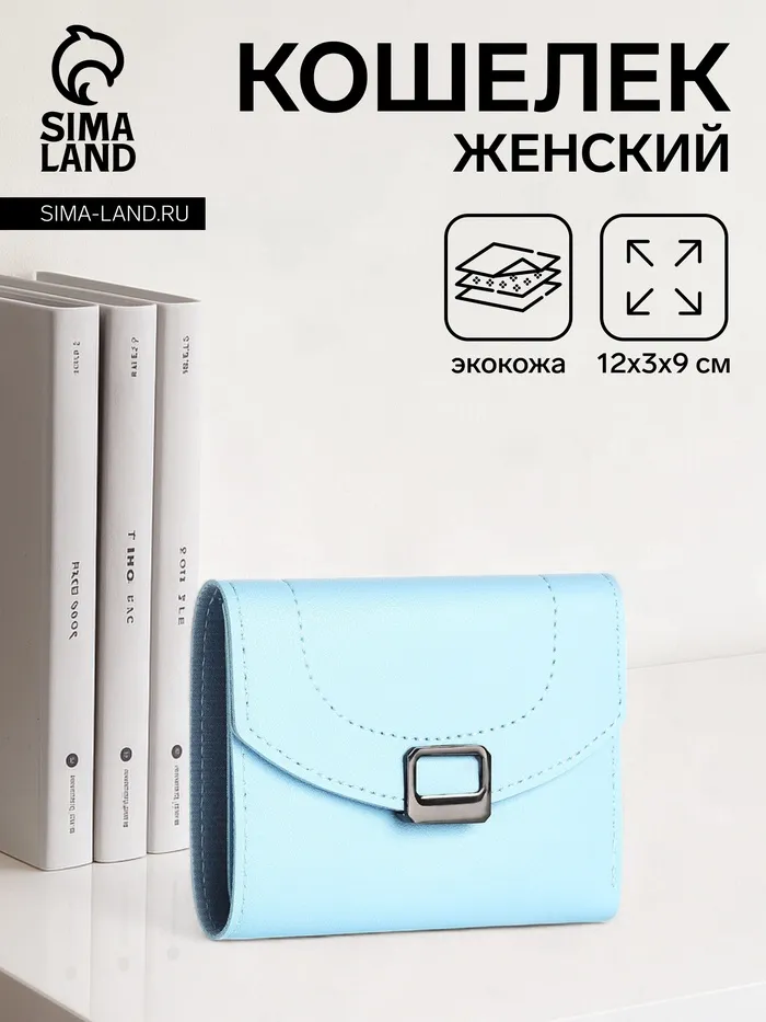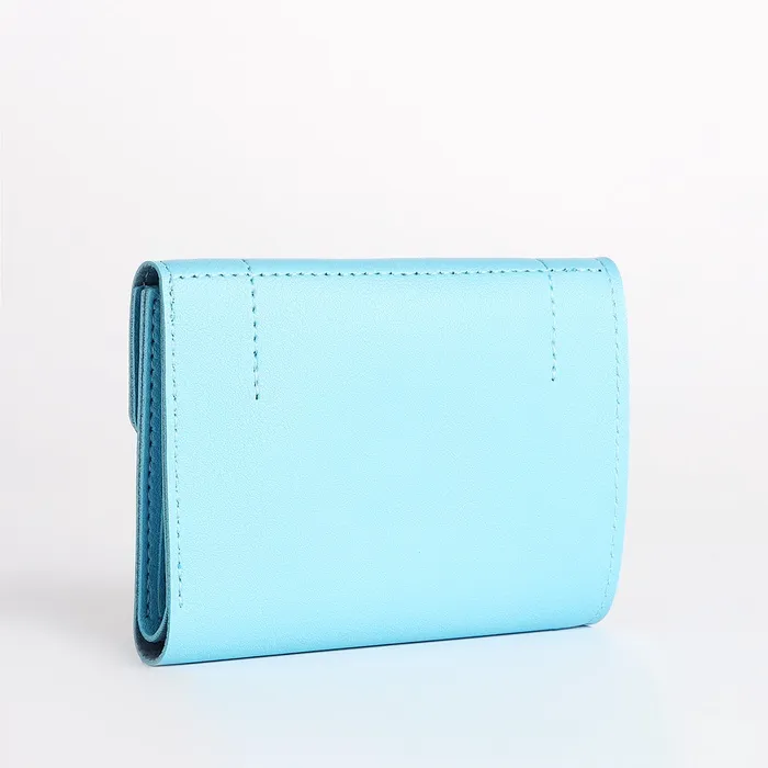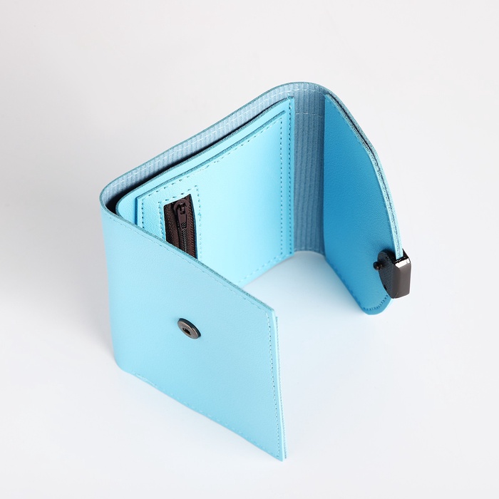 Кошелёк женский на кнопке, 12×3×9 см, однотонный, голубой — Характеристики