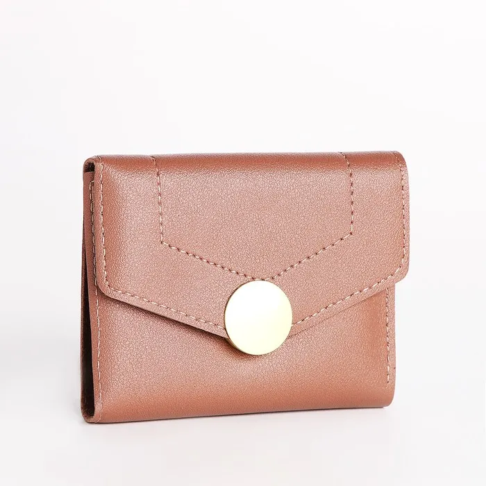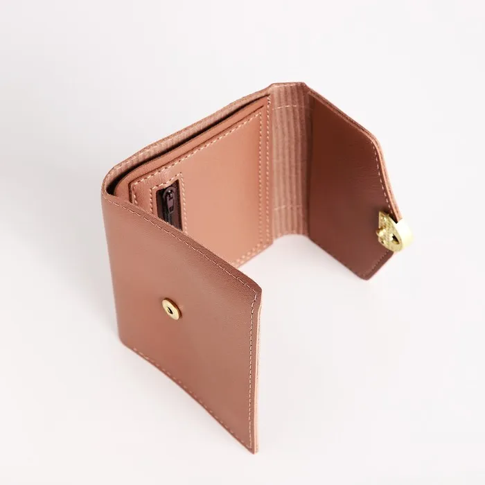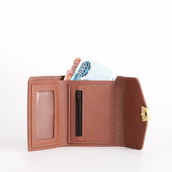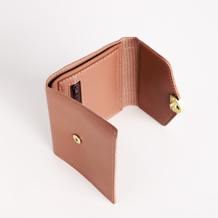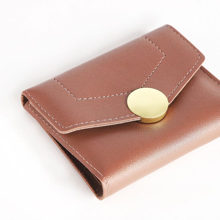 Кошелёк женский на кнопке 12×3×9 см, однотонный, с золотистой фурнитурой, бежевый — Характеристики