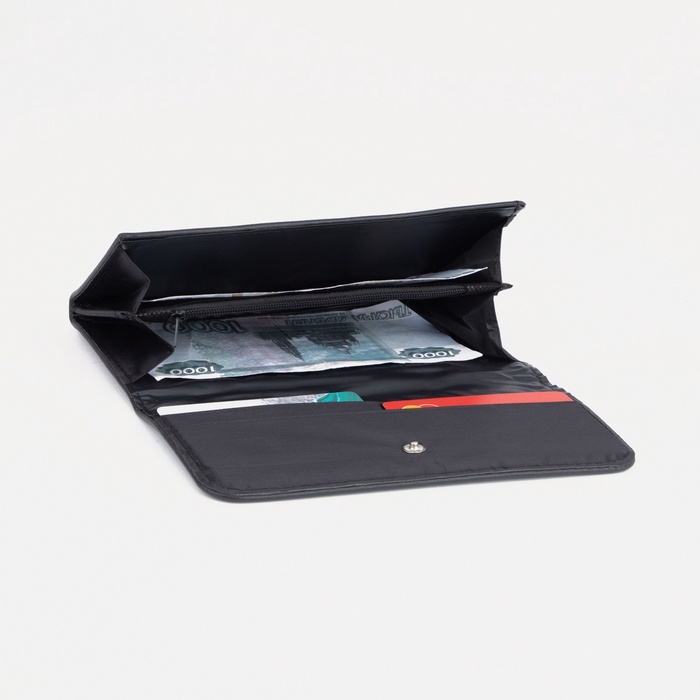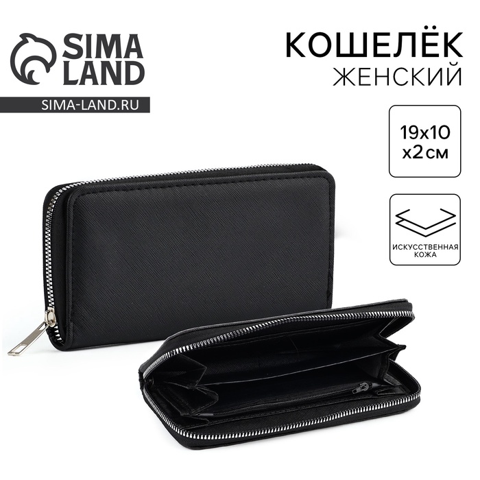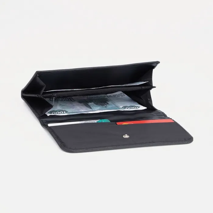 Кошелёк женский на кнопке, 19×2×9 см, однотонный, чёрный — Характеристики