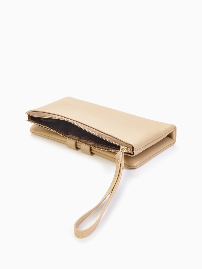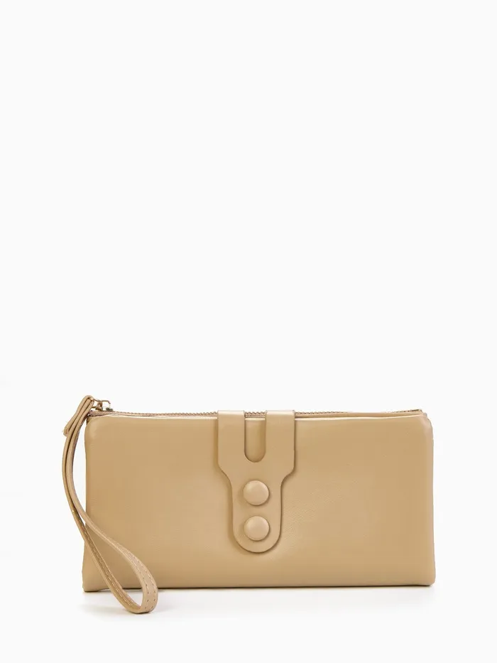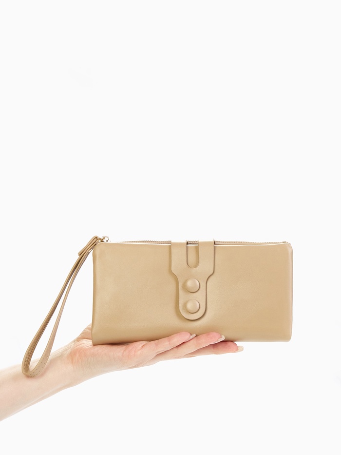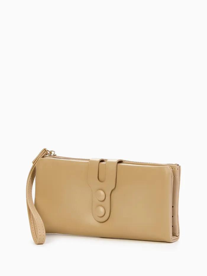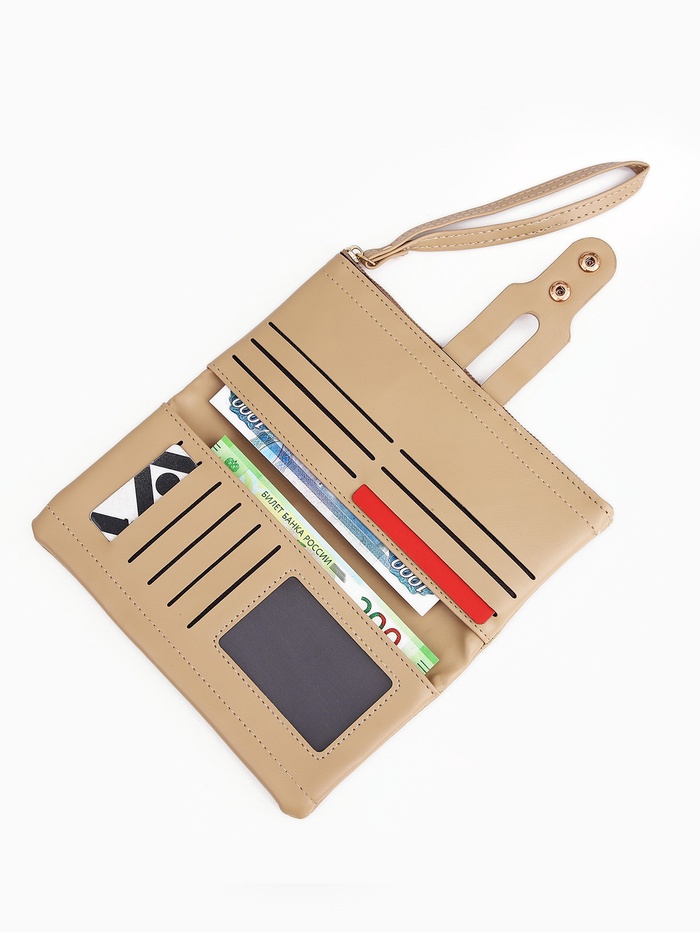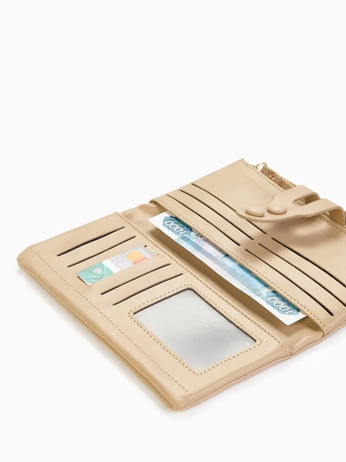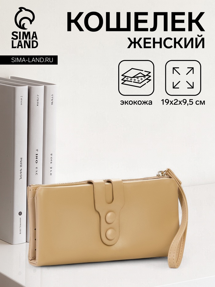 Кошелёк женский на кнопке, 19×2×9.5 см, однотонный, бежевый — Характеристики
