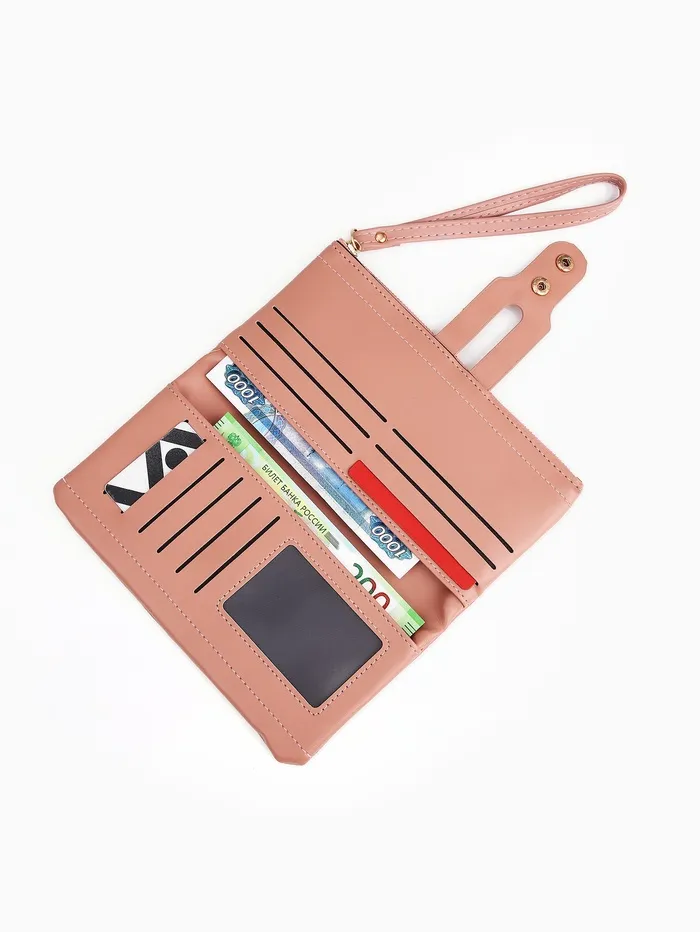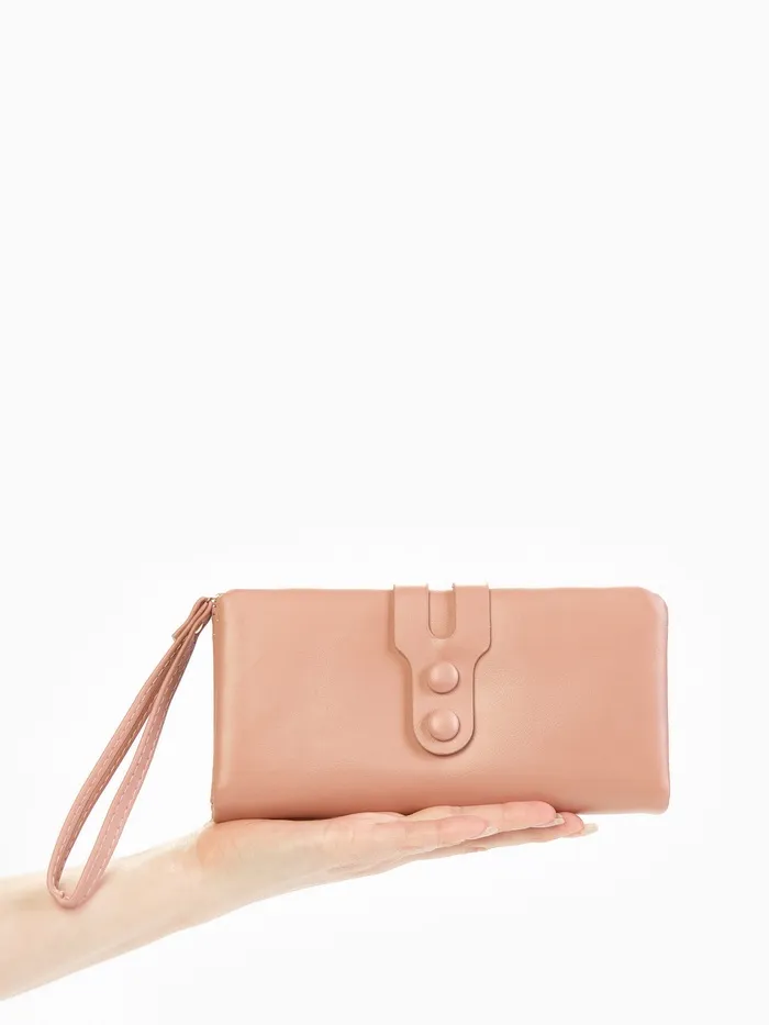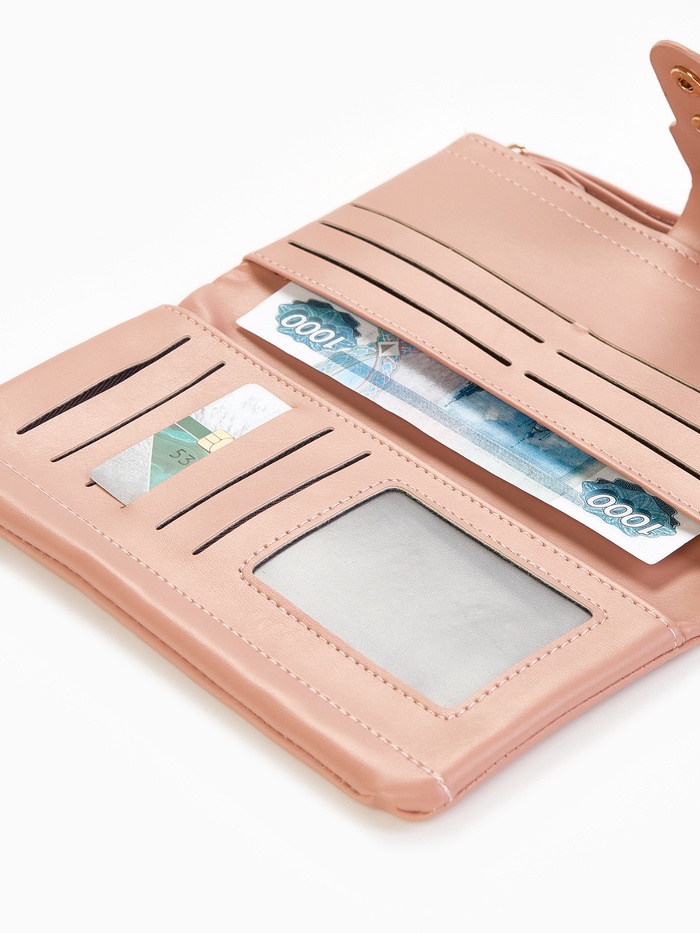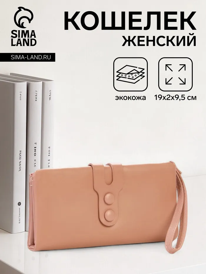 Кошелёк женский на кнопке, 19×2×9.5 см, однотонный, розовый — Характеристики