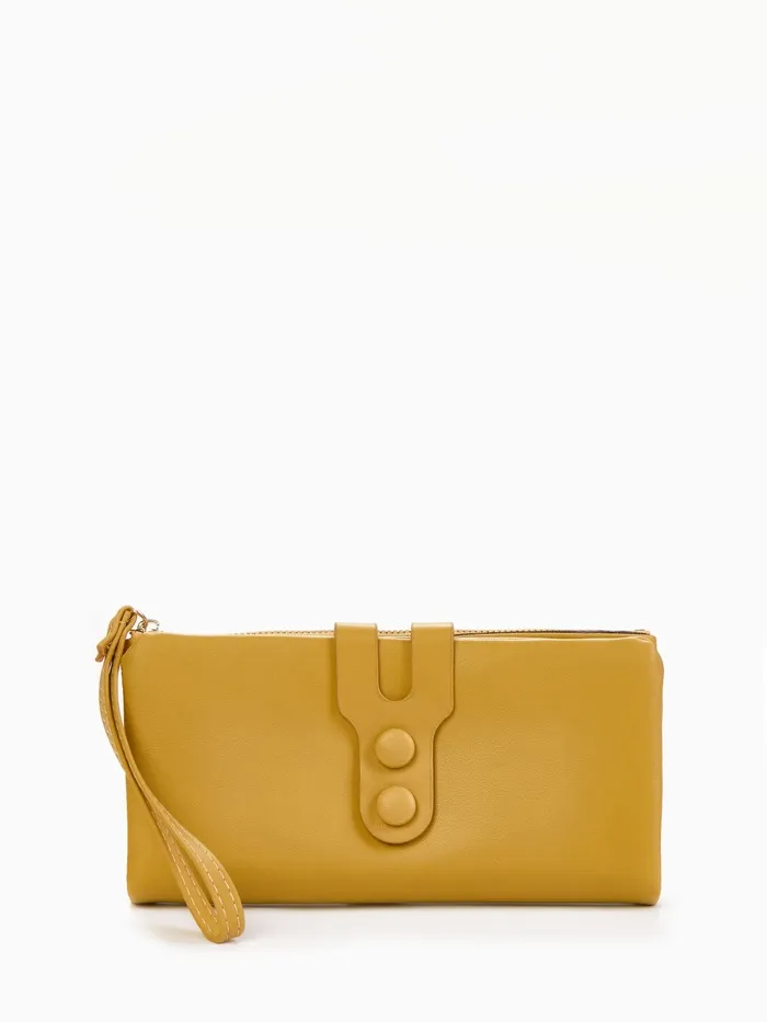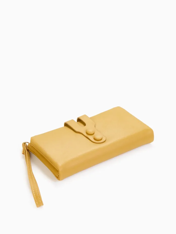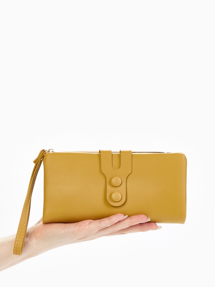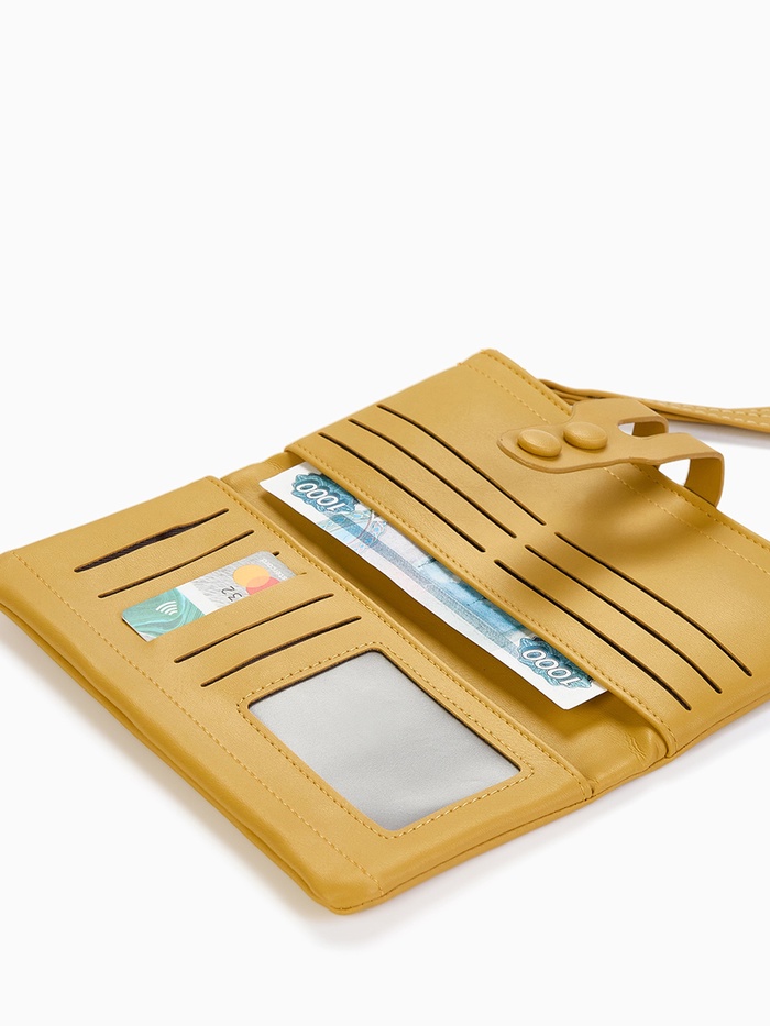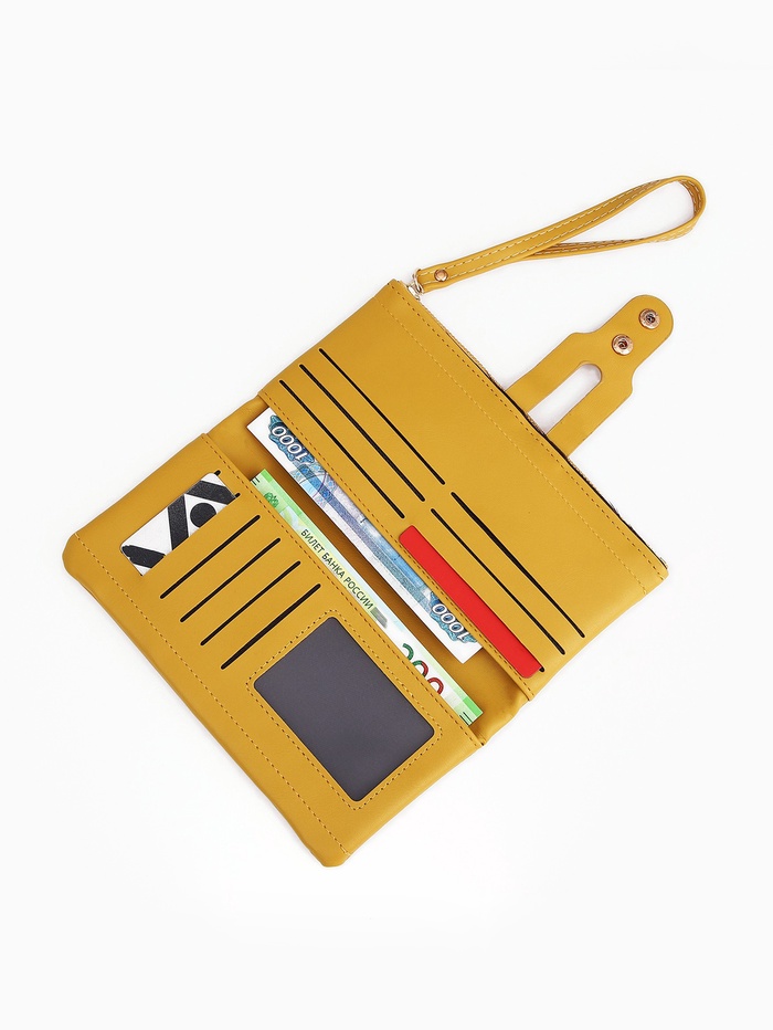 Кошелёк женский на кнопке, 19×2×9.5 см, однотонный, жёлтый — Характеристики