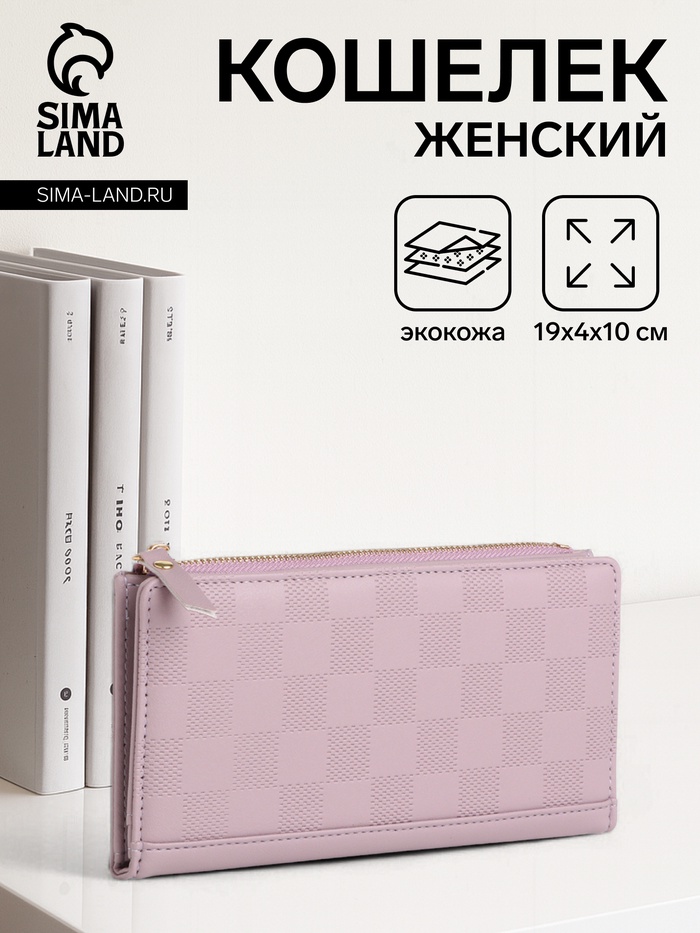 Кошелёк женский на кнопке, 19×4×10 см, сиреневый — Характеристики