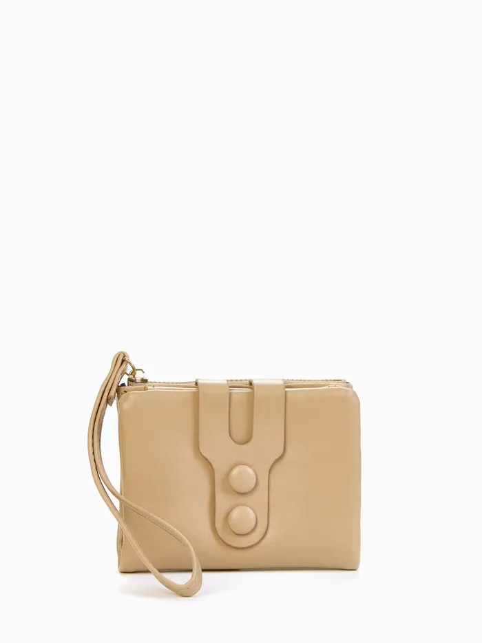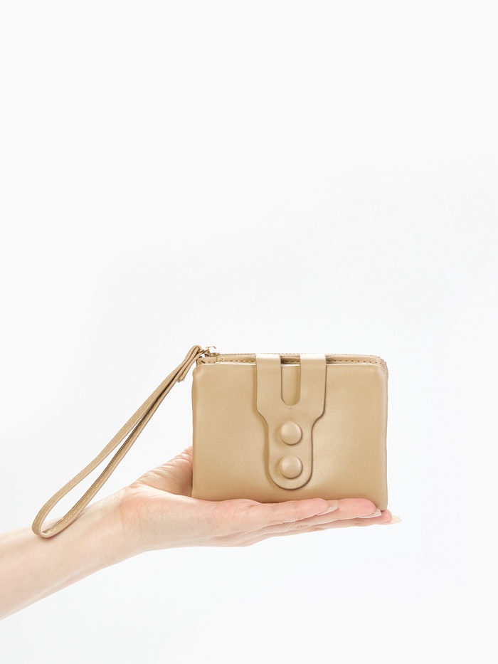 Кошелёк женский на кнопке с ремешком, цвет бежевый — Характеристики