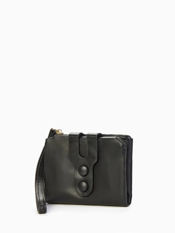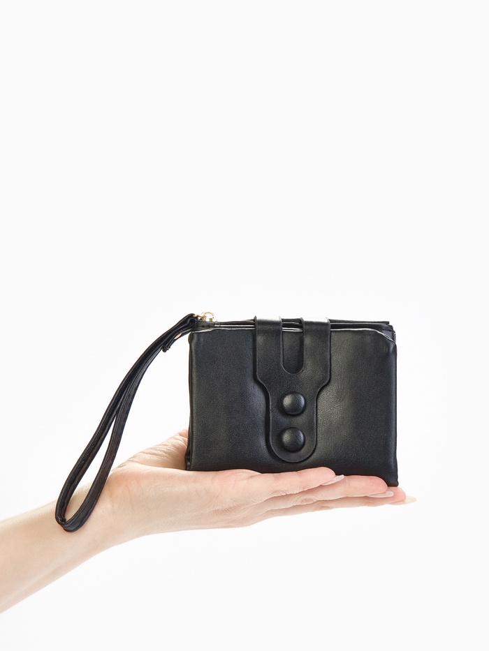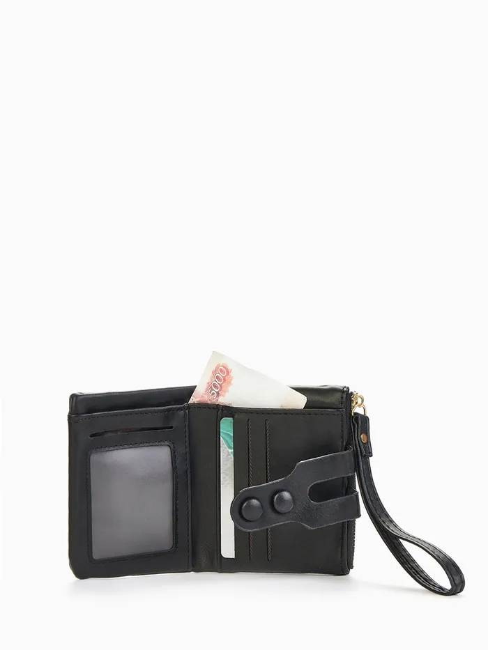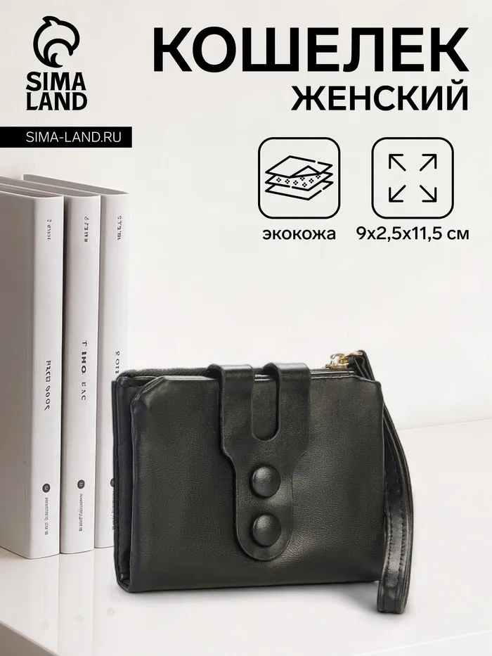 Кошелёк женский на кнопке с ремешком, цвет чёрный — Характеристики