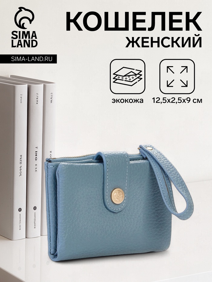 Кошелёк женский на кнопке с ремешком, цвет голубой — Характеристики