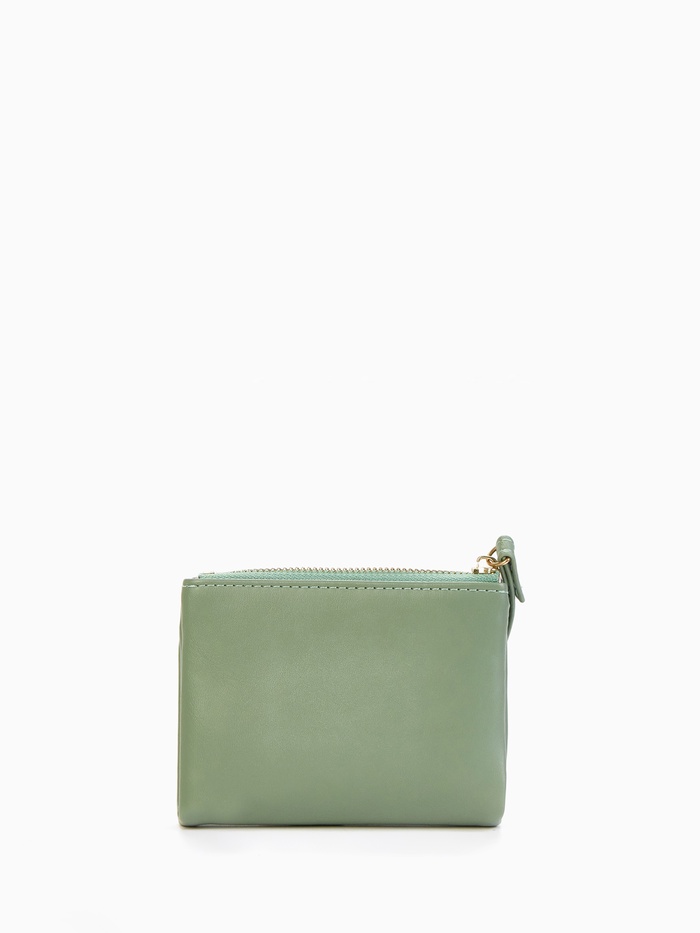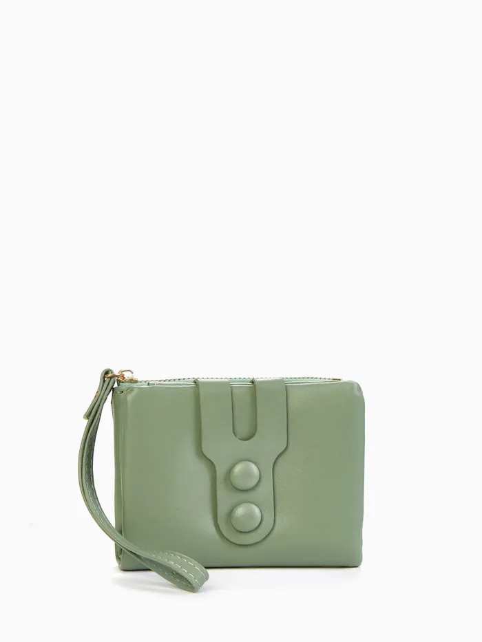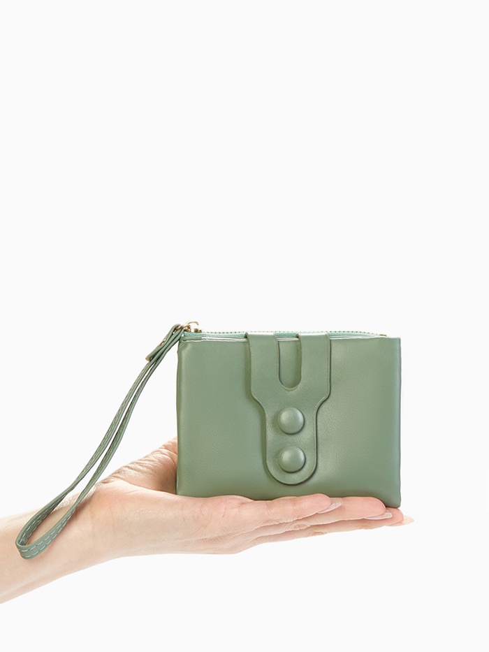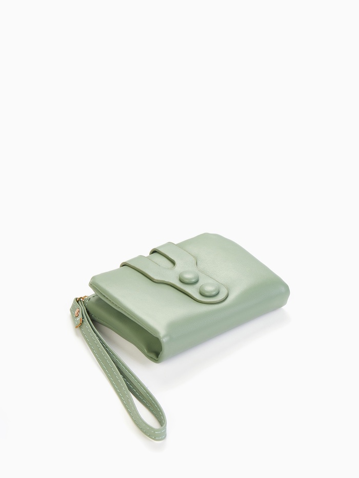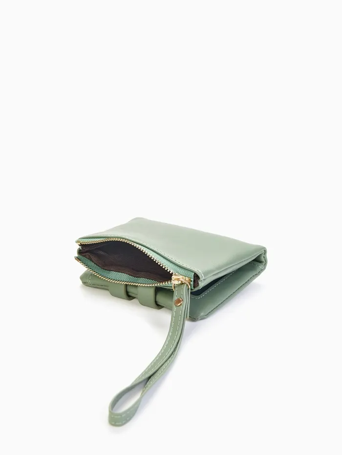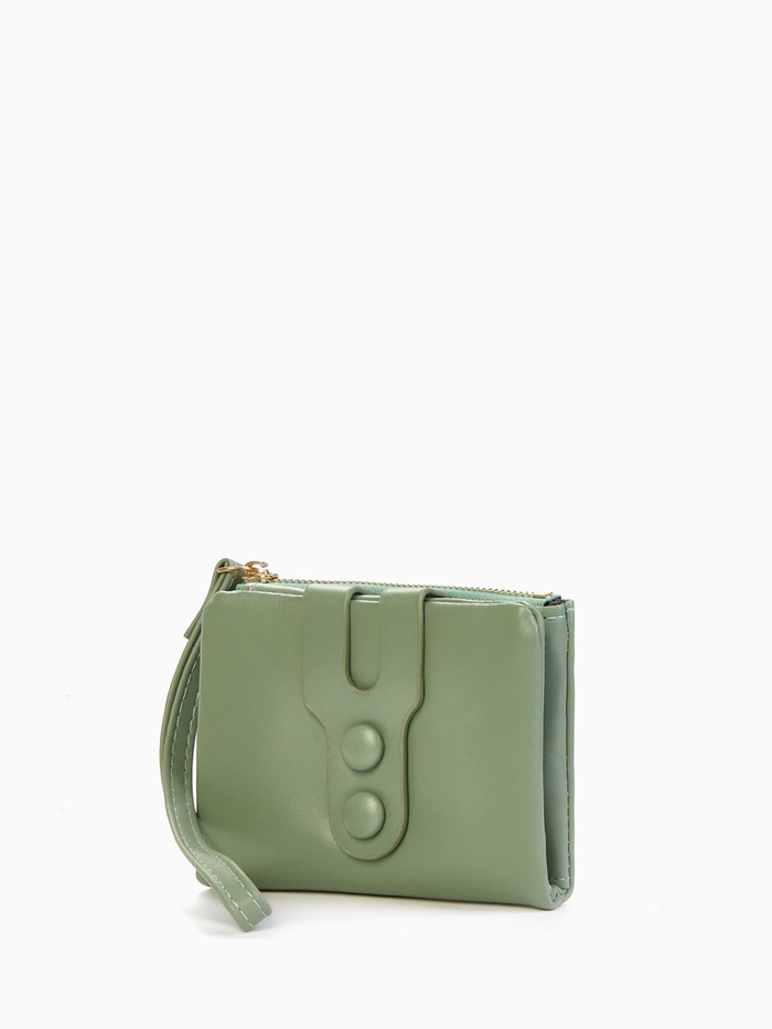 Этот зелёный кошелёк с ремешком сохраняет деньги и карты в порядке, не отвлекая от дня. Модель среднего размера удобно лежит в руке, а практичный ремешок даёт свободу движений. Искусственная кожа мягко служит годами, а насыщенный цвет добавляет образу свежести без лишних деталей.