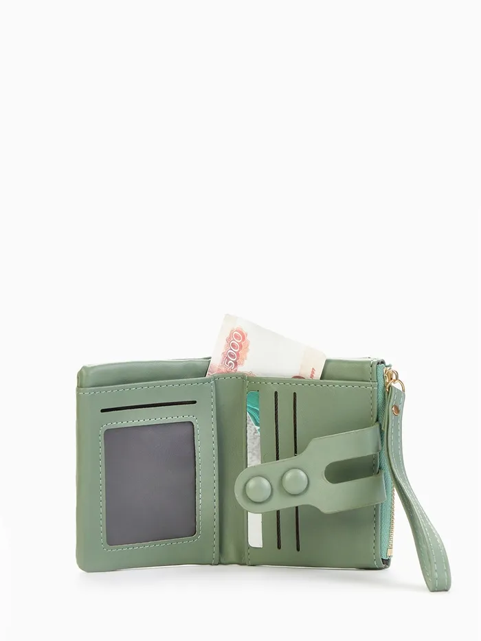 Кошелёк женский на кнопке с ремешком, цвет зелёный — Характеристики