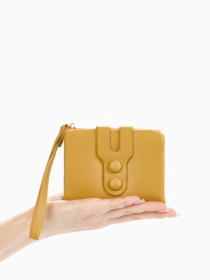 Кошелёк женский на кнопке с ремешком, цвет жёлтый — Характеристики