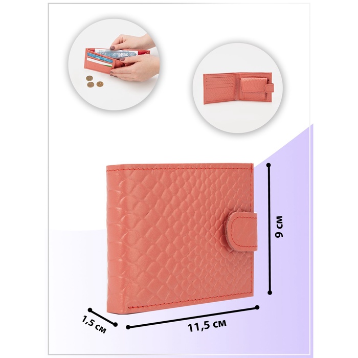 Кошелёк женский на кнопке TEXTURA, цвет чайной розы — Характеристики