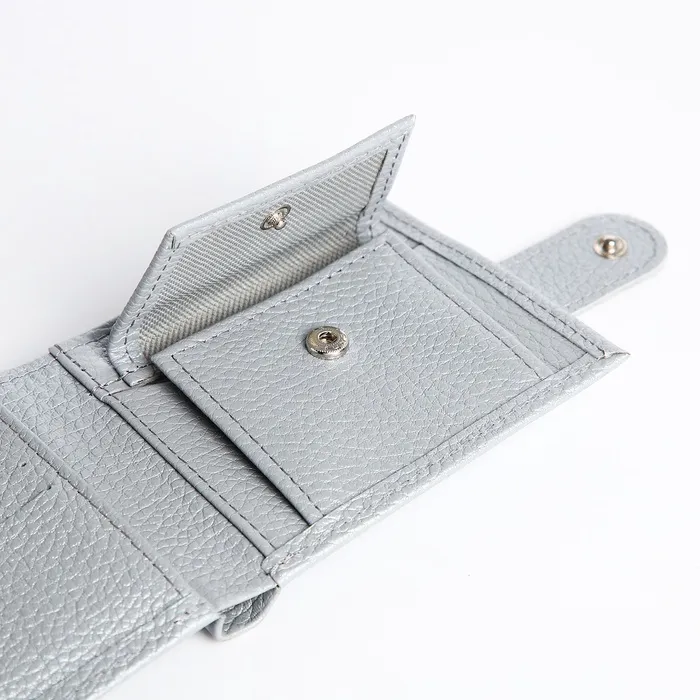 Кошелёк имеет продуманное двойное сложение и надёжную застёжку на кнопку, что гарантирует безопасность ваших вещей.
