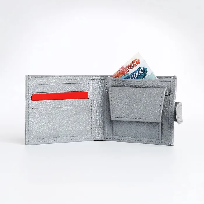 Несмотря на компактные размеры (11,5 x 1,5 x 9 см), внутри достаточно места для всего необходимого: монет, карт и купюр. Отделение для монет также оснащено отдельной кнопкой, что делает использование кошелька ещё более удобным.