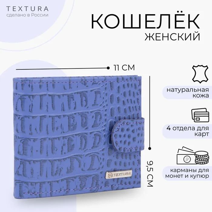 Кошелёк женский на кнопке TEXTURA, цвет сиреневый — Характеристики