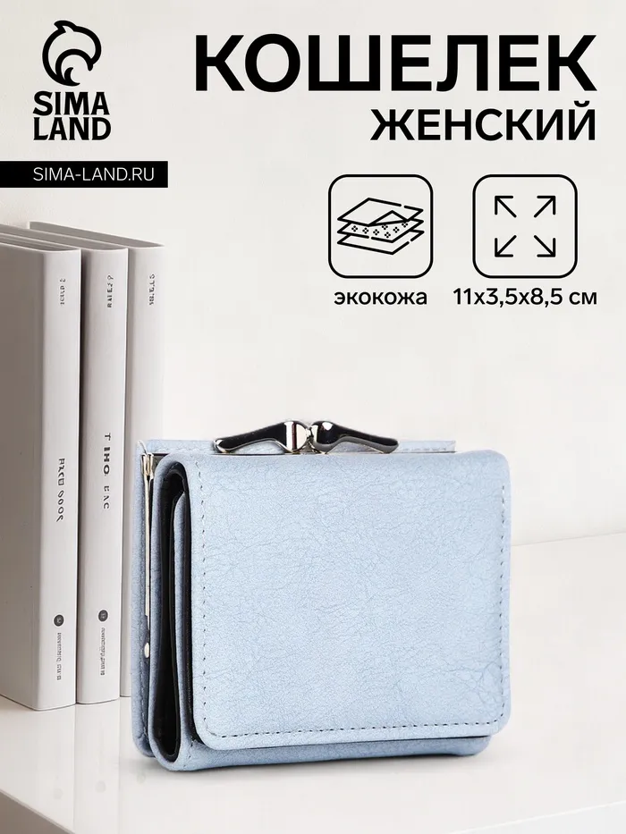 Кошелёк женский на кнопке, цвет голубой — Характеристики