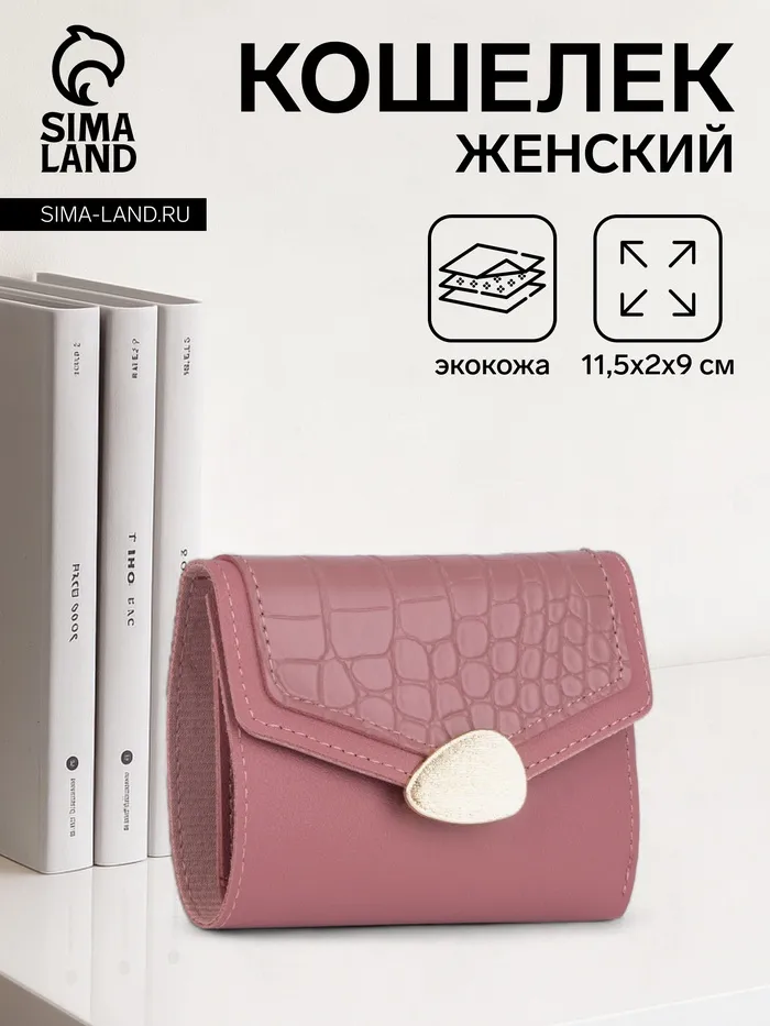 Кошелёк женский на кнопке, цвет пудровый — Характеристики