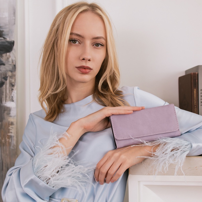 Кошелёк женский на кнопке, цвет сиреневый — Характеристики