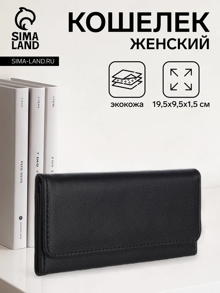 Кошелёк женский на магните, 19.5×1.5×9.5 см, чёрный — Характеристики