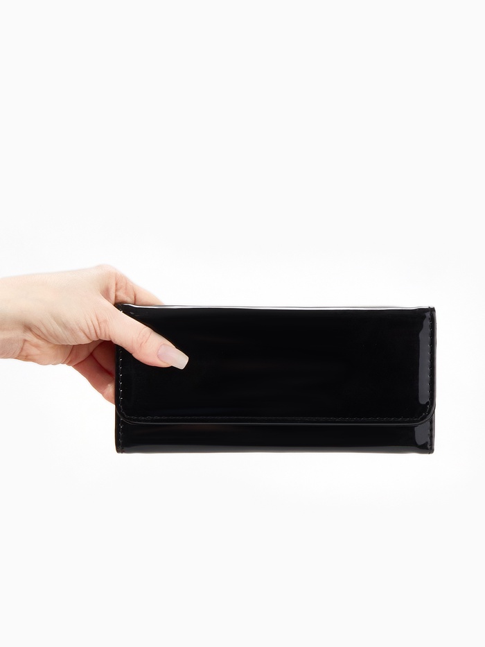 Кошелёк женский на магните, 19.5×2.5×9 см, лаковый, чёрный — Характеристики
