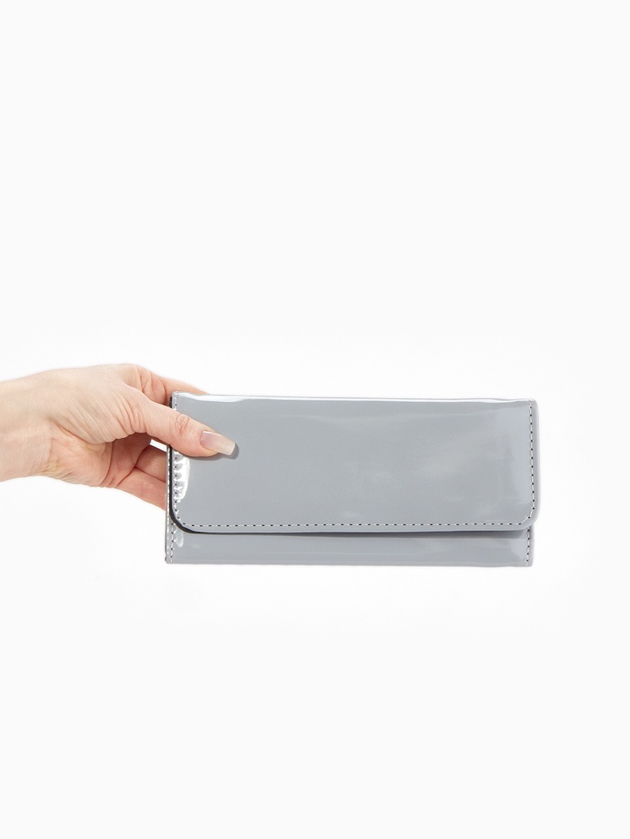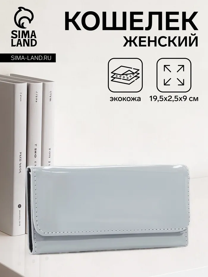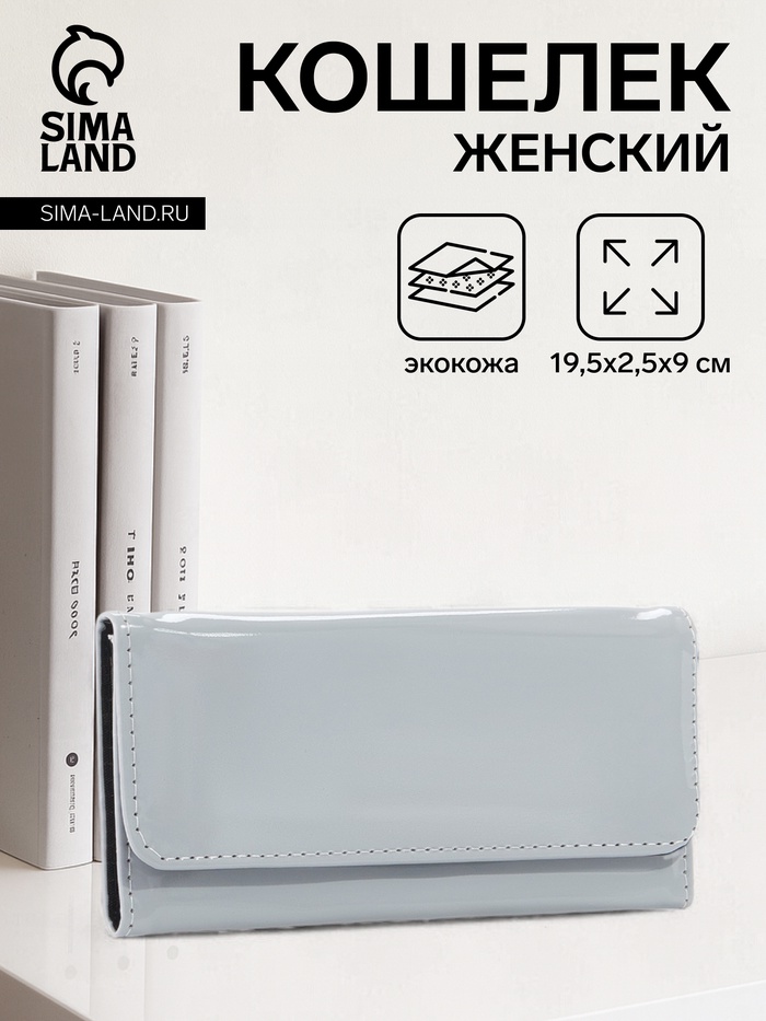 Кошелёк женский на магните, 19.5×2.5×9 см, лаковый, серый — Характеристики