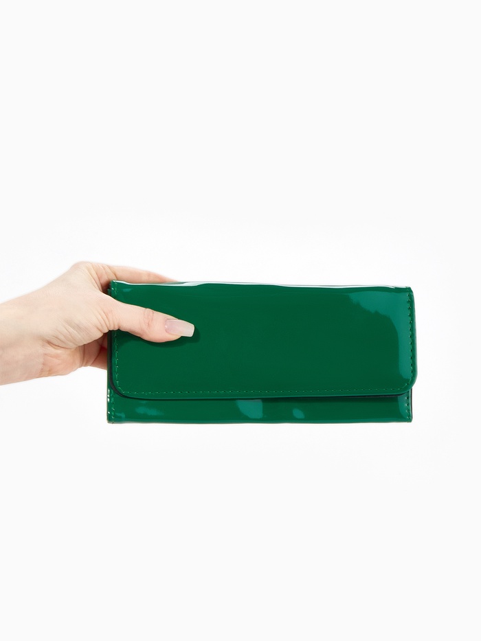 Кошелёк женский на магните, 19.5×2.5×9 см, лаковый, зелёный — Характеристики