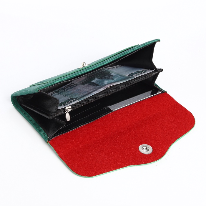 Кошелёк женский на магните, 19×2.5×9 см, зелёный — Характеристики