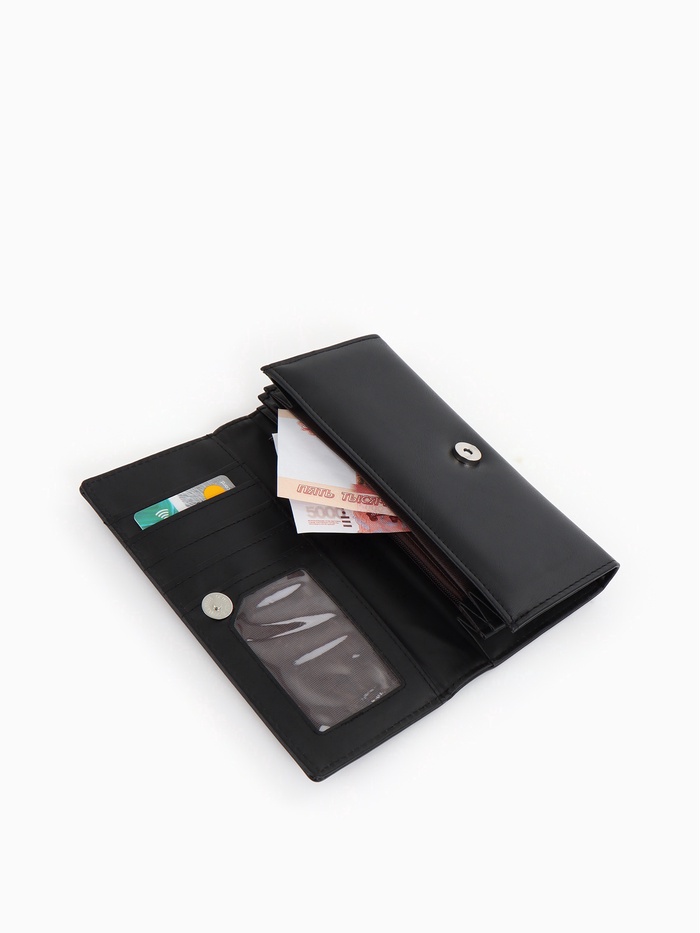 Этот женский кошелек с магнитной застежкой создан для повседневного использования. Классический черный цвет и продуманная организация внутреннего пространства делают его практичным выбором для тех, кто ценит порядок в личных вещах.