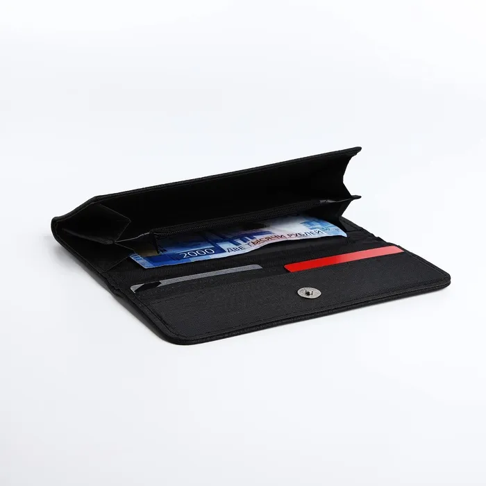 Кошелёк женский на магните, 20×3×9 см, однотонный, чёрный
