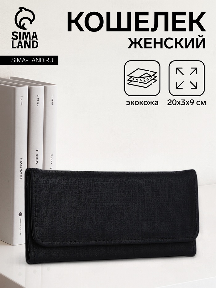 Кошелёк женский на магните, 20×3×9 см, однотонный, чёрный — Характеристики