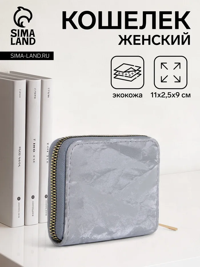 Кошелёк женский на молнии 11×2.5×9 см, однотонный, серый — Характеристики