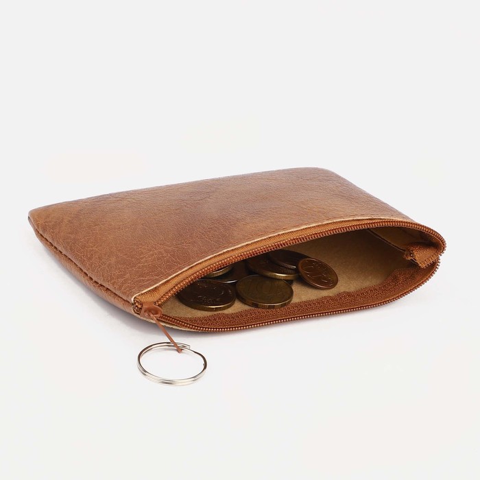 Светло-коричневая монетница на молнии — практичное решение для хранения мелочи. Компактный размер (до 14 см) позволяет легко носить её в кармане или небольшой сумке, сохраняя монеты в порядке.