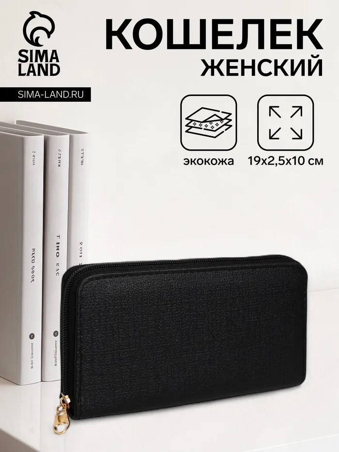 Кошелёк женский на молнии, 19.5×2.5×10 см, чёрный — Характеристики