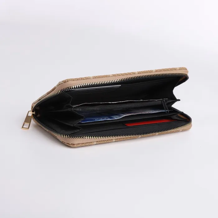 Кошелёк женский на молнии, 19.5×2.5×10 см, с геометрическим узором, бежевый — Характеристики