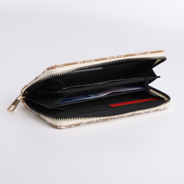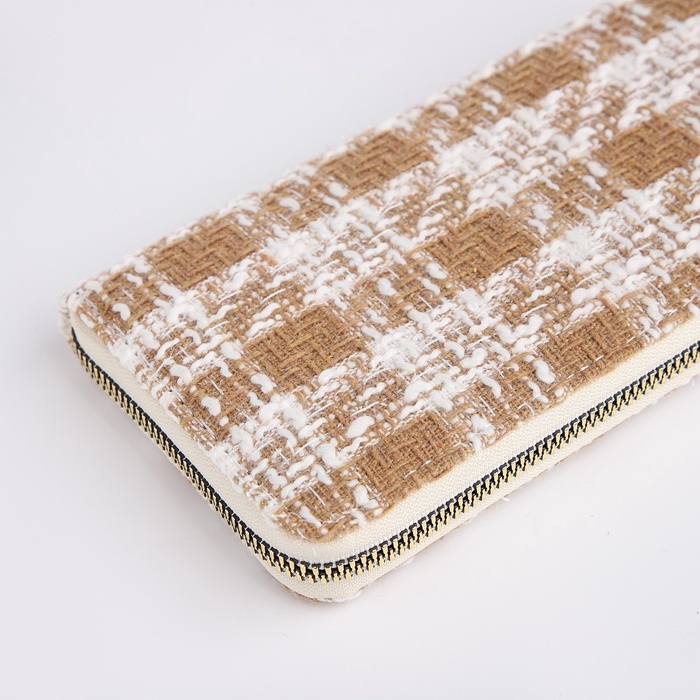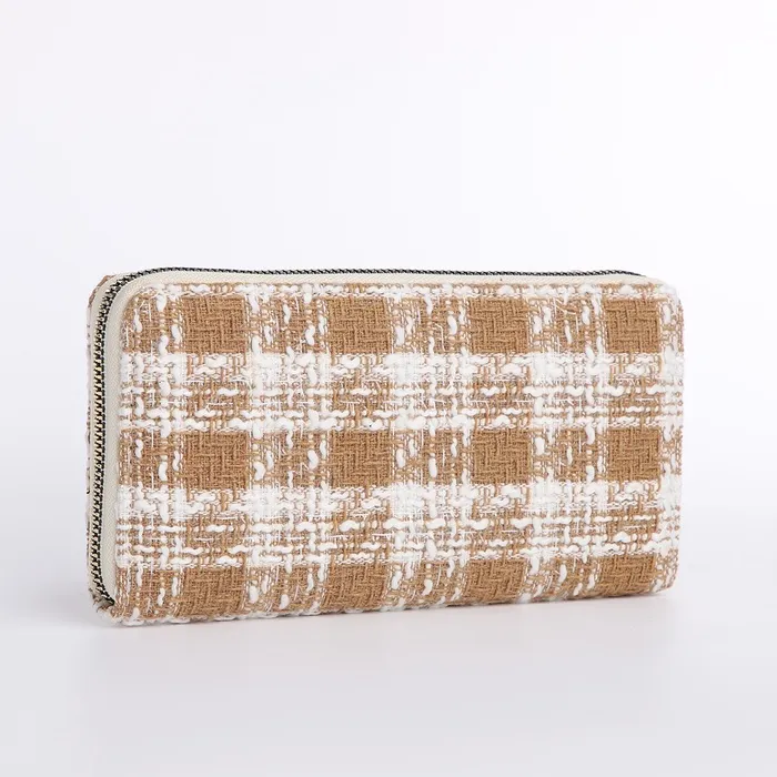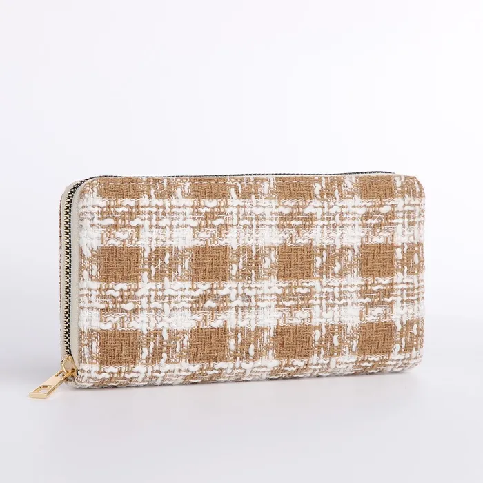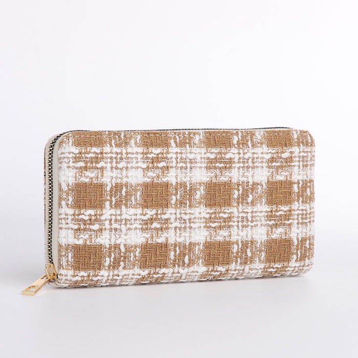Кошелёк женский на молнии, 19.5×2.5×10 см, в клетку, бежевый — Характеристики
