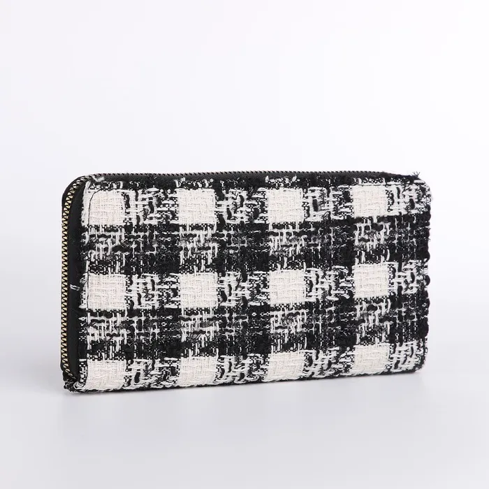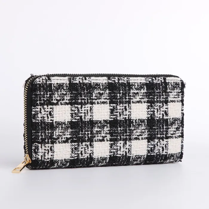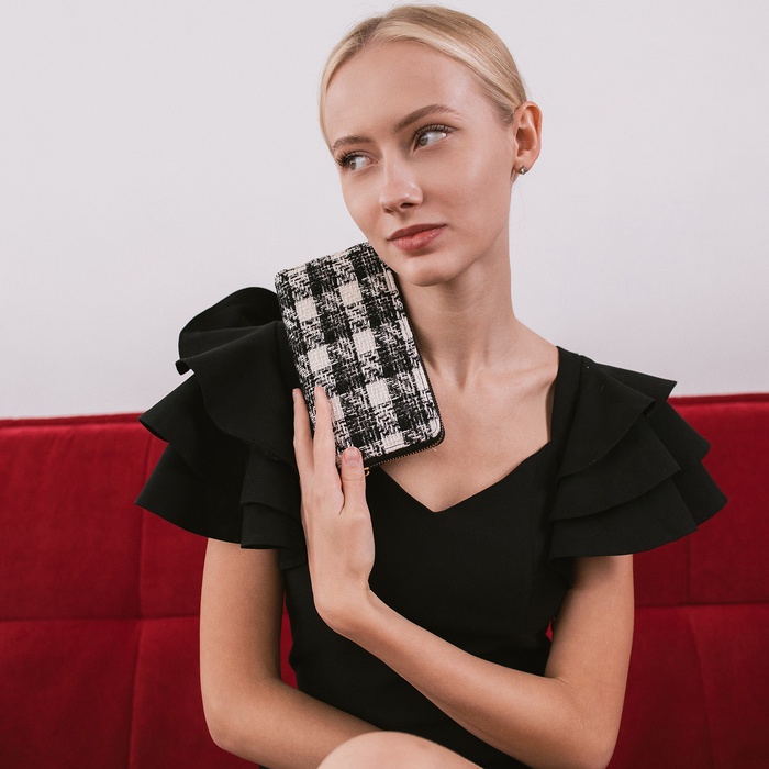Кошелёк женский на молнии, 19.5×2.5×10 см, в клетку, чёрный — Характеристики
