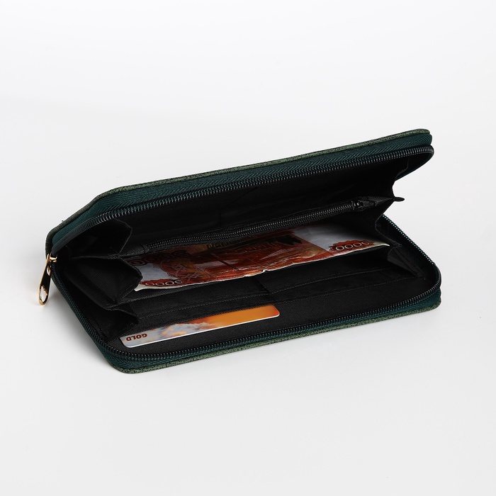 Кошелёк женский на молнии, 19.5×2.5×10 см, зелёный — Характеристики