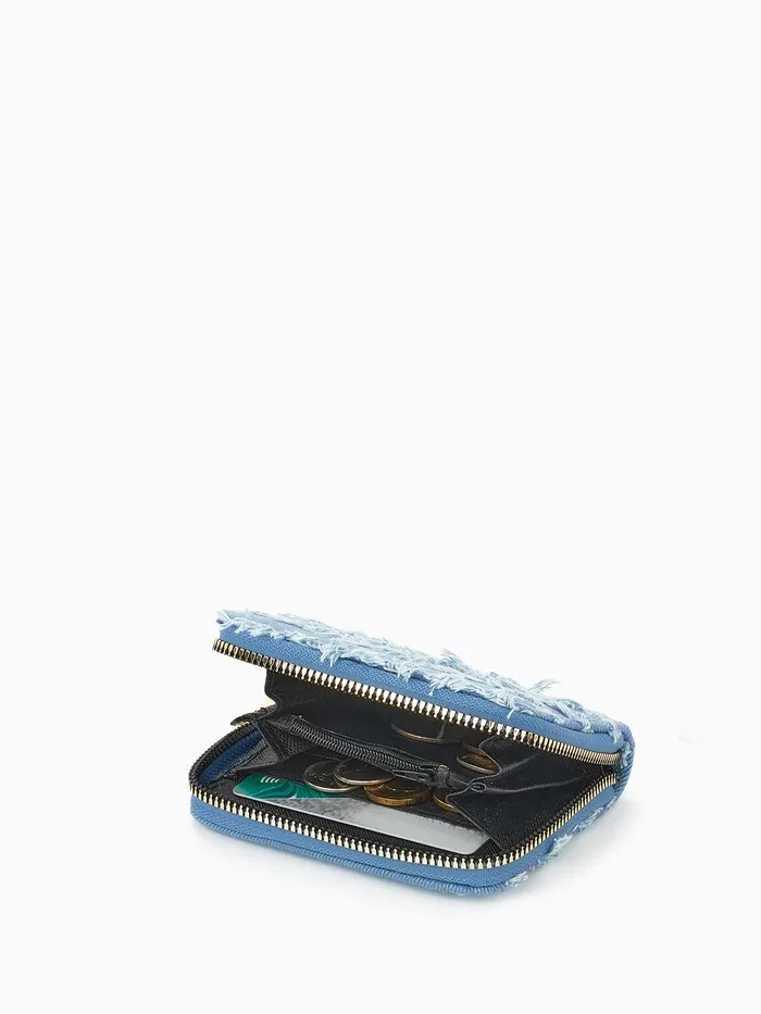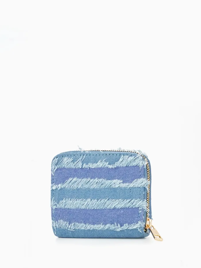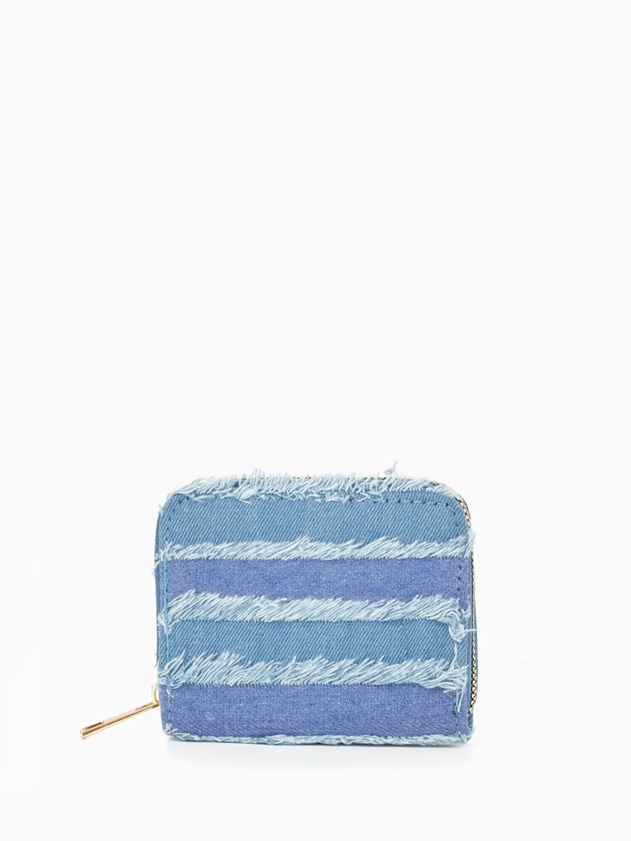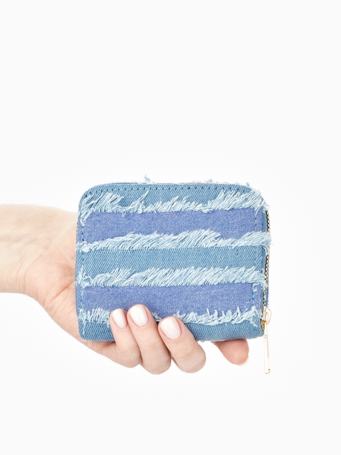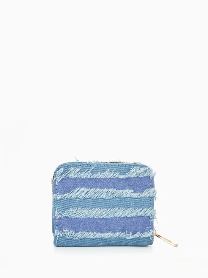 Кошелёк женский на молнии 8.5×2×11 см, джинсовый, в полоску, голубой — Характеристики