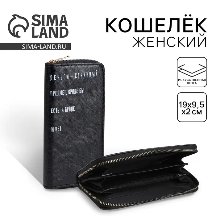 Кошелёк женский на молнии «Деньги», чёрный — Характеристики