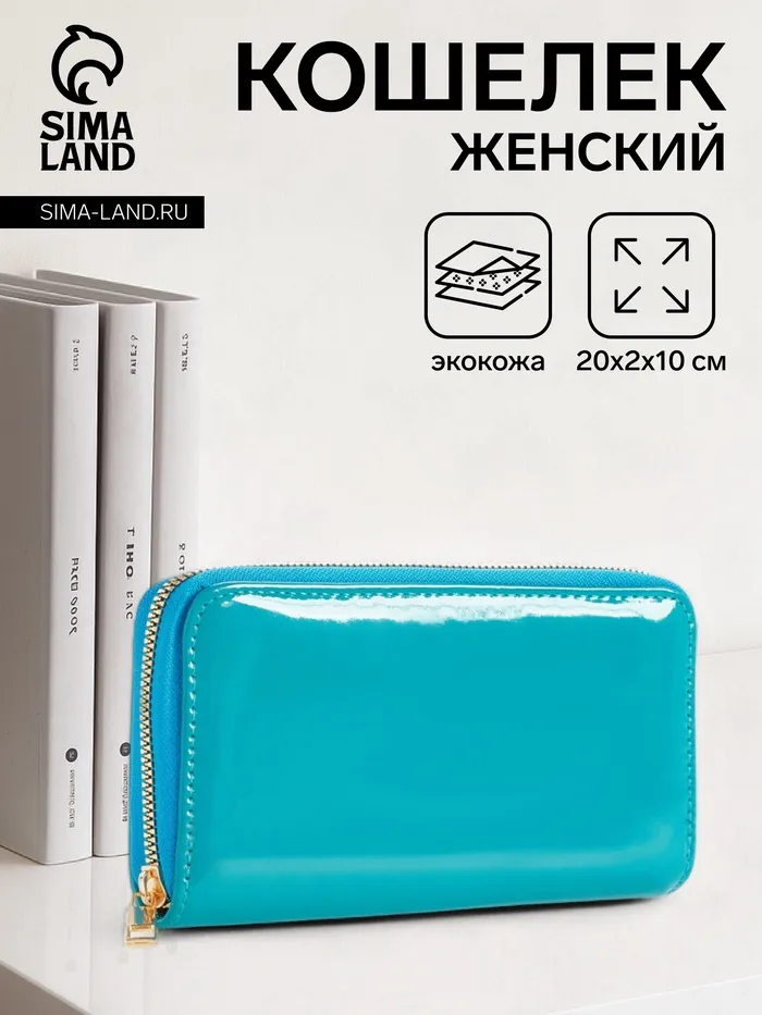 Кошелёк женский на молнии, лакированный, цвет бирюзовый — Характеристики