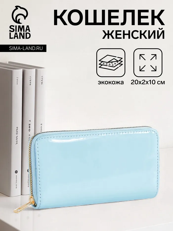 Кошелёк женский на молнии, лакированный, цвет голубой — Характеристики