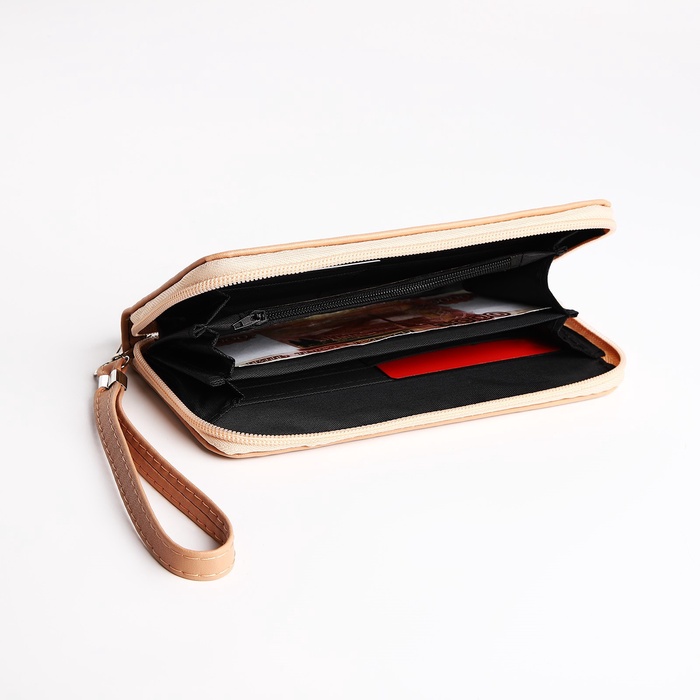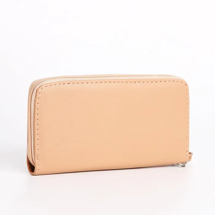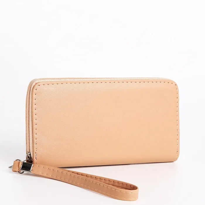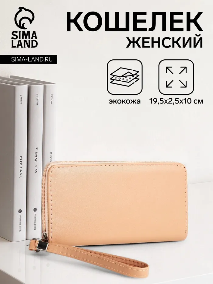 Кошелёк женский на молнии с ремешком, 19.5×2.5×10 см, однотонный, бежевый — Характеристики