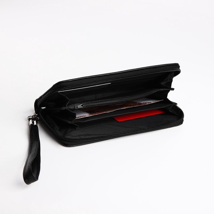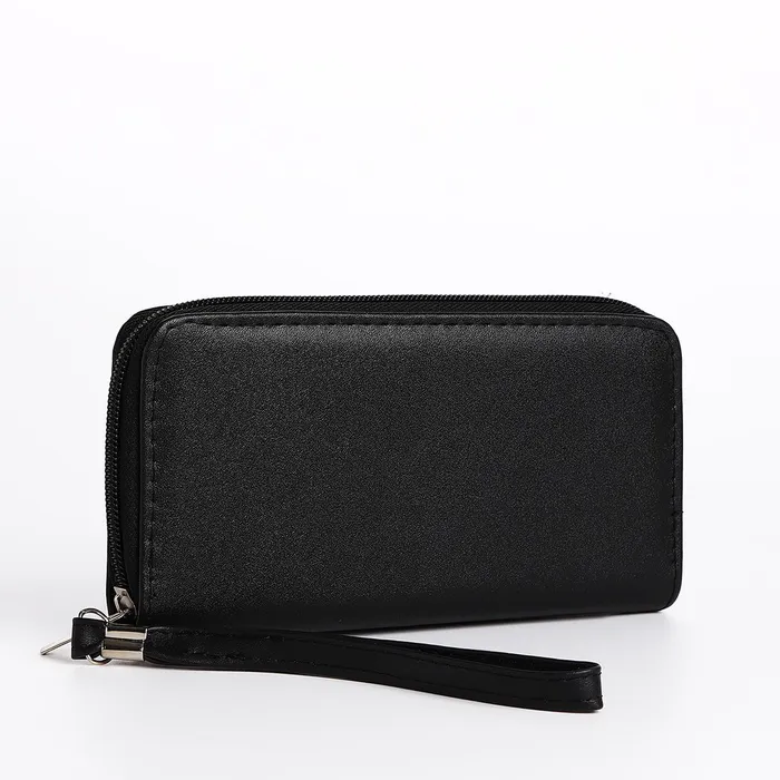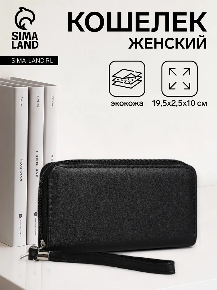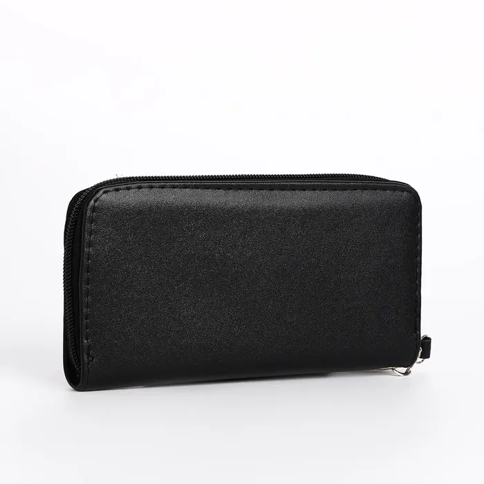 Кошелёк женский на молнии с ремешком, 19.5×2.5×10 см, однотонный, чёрный — Характеристики
