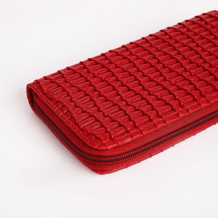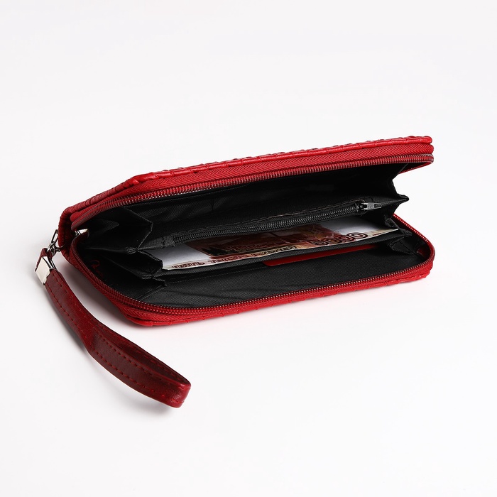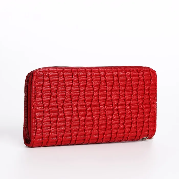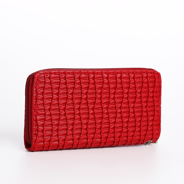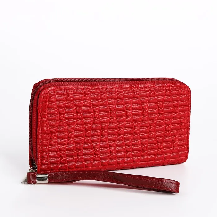 Кошелёк женский на молнии с ремешком, 19.5×2.5×10 см, текстурный, красный — Характеристики