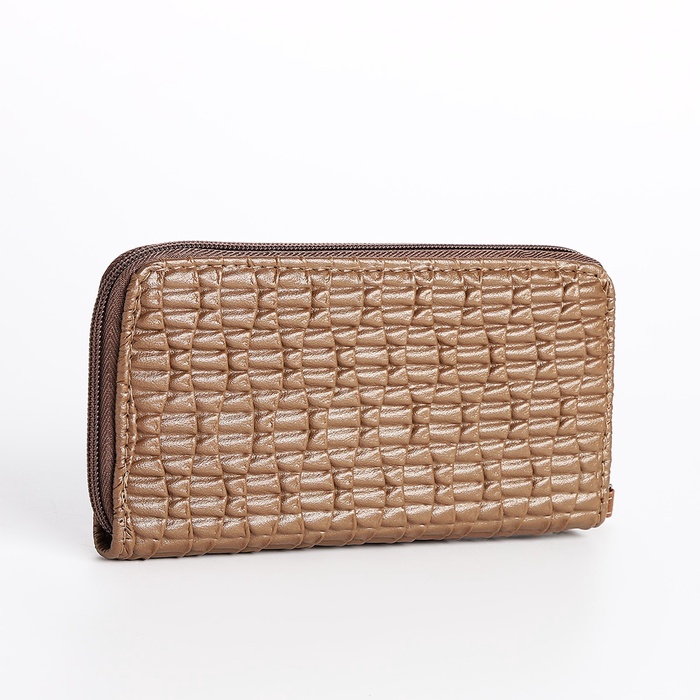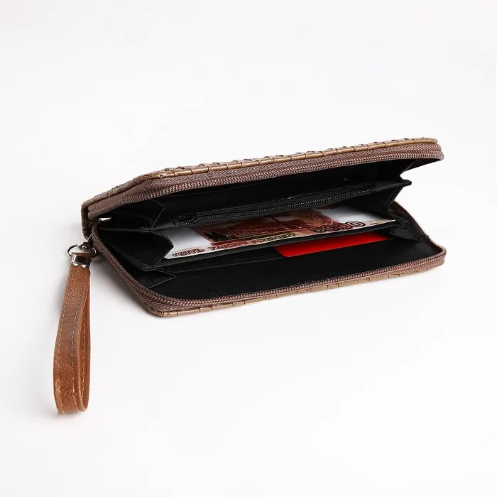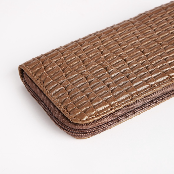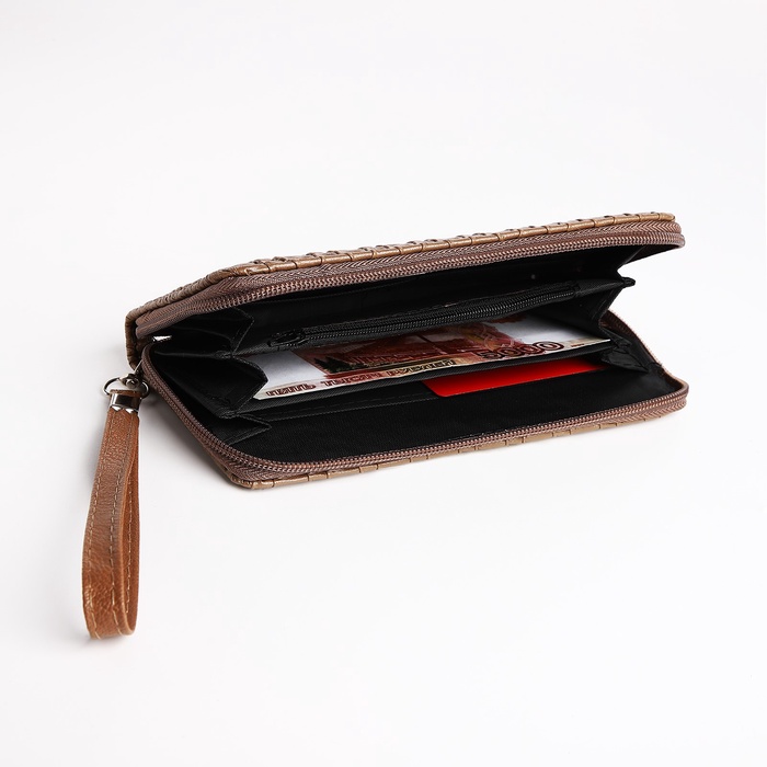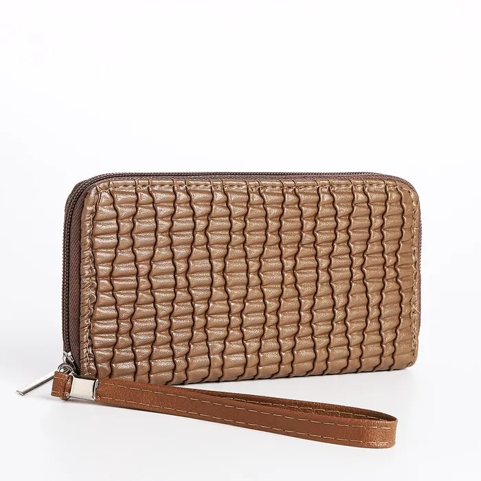 Кошелёк женский на молнии с ремешком, 19.5×2.5×10 см, текстурный, светло-коричневый — Характеристики